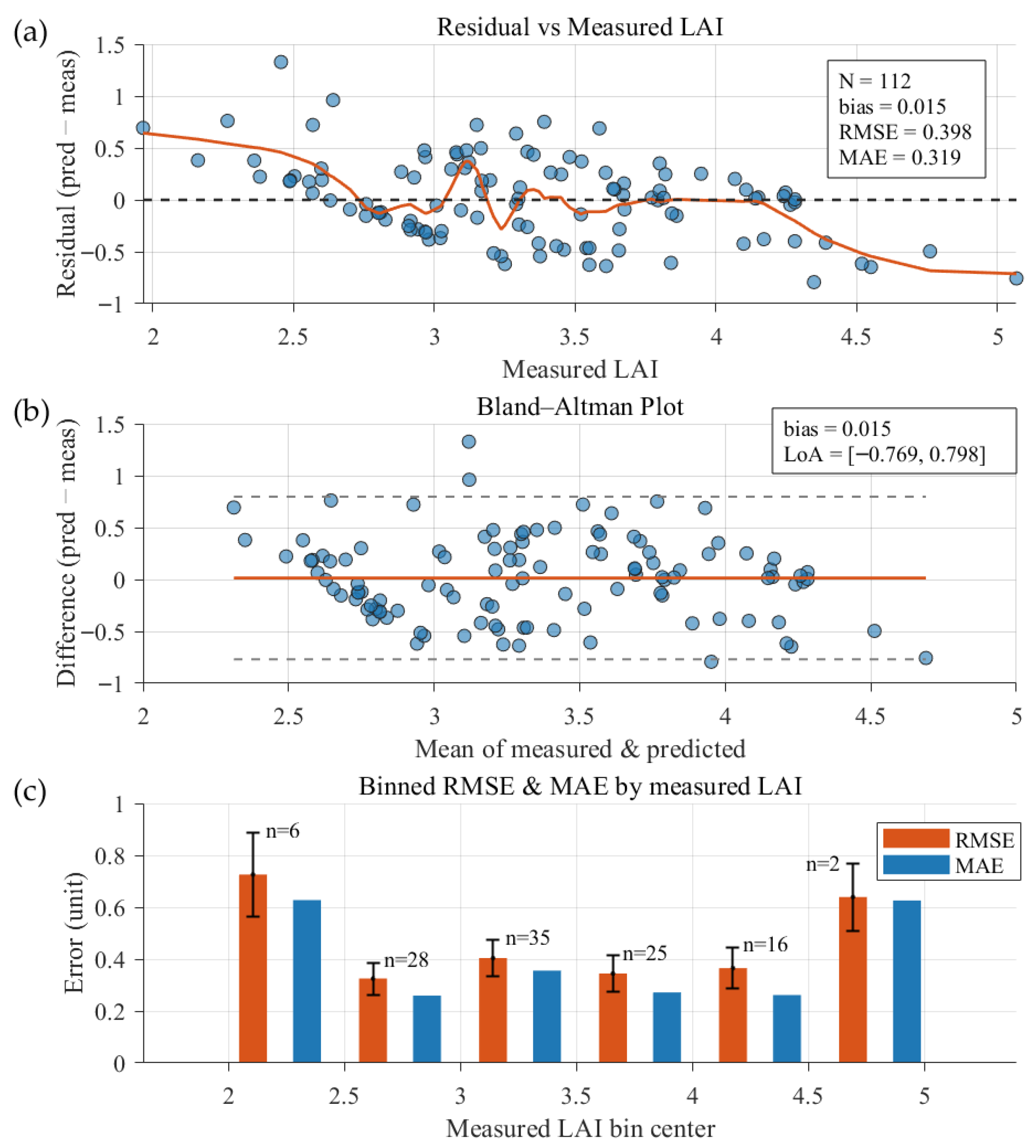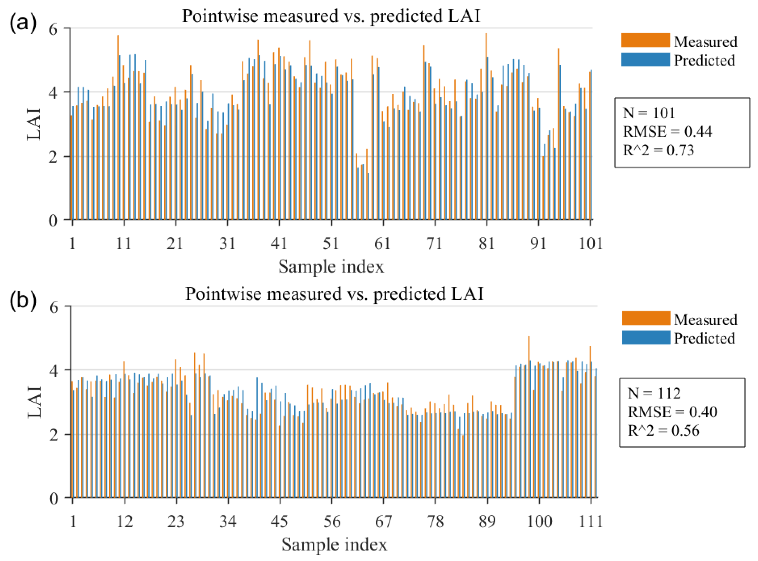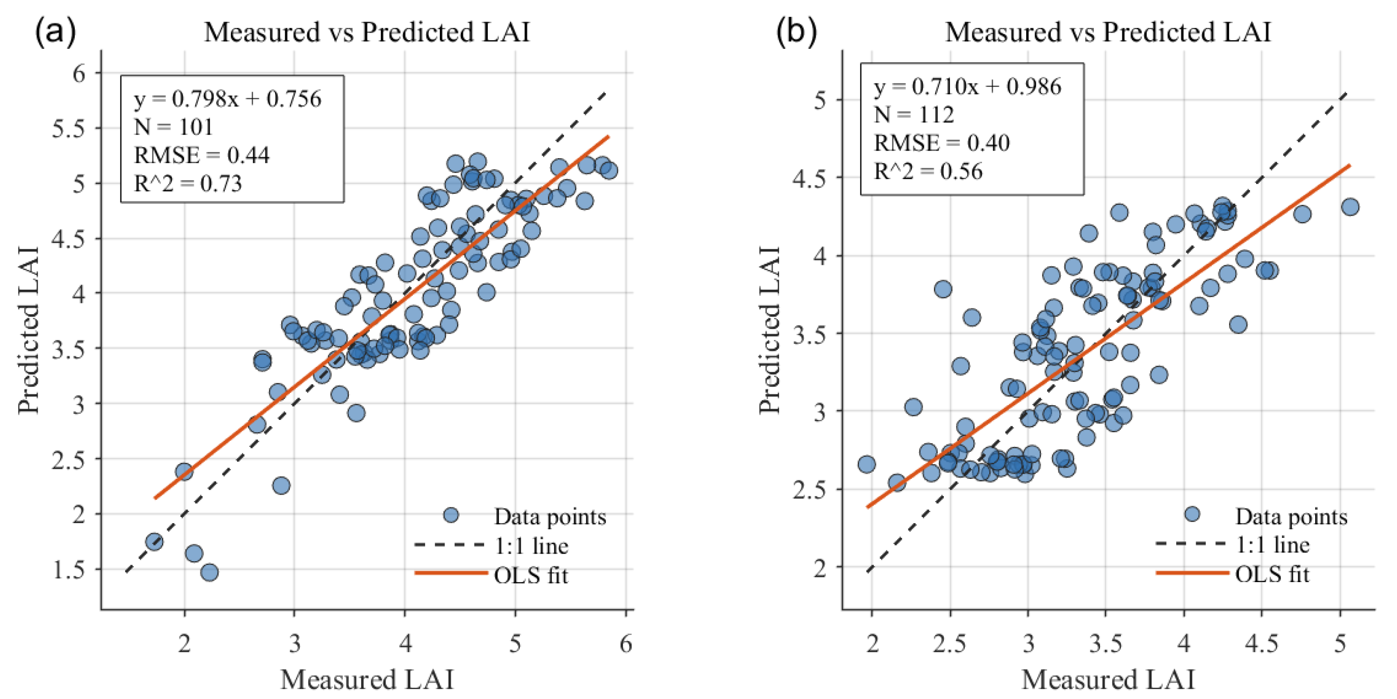 3.2.2. Accuracy Assessment of LAI Retrieval