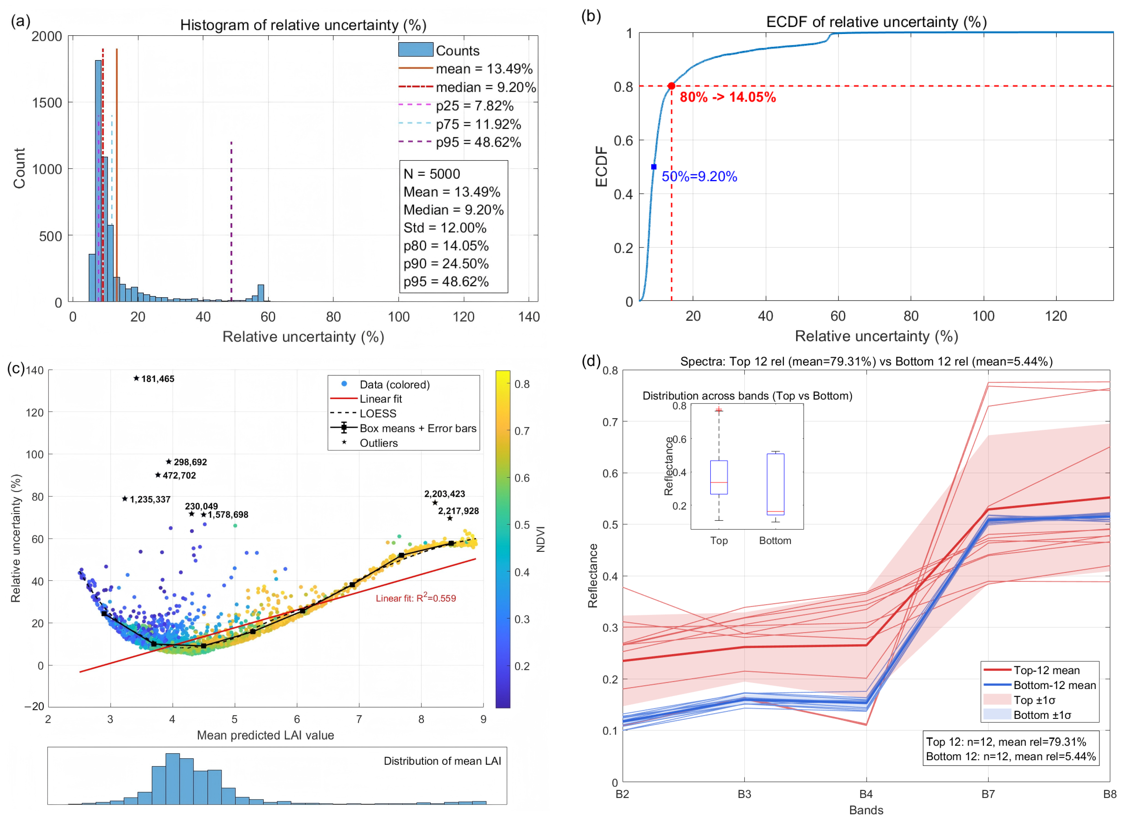 3.3. Quantification of LAI Retrieval Uncertainty via a Coupled Physics-Driven and Machine-Learning Approach