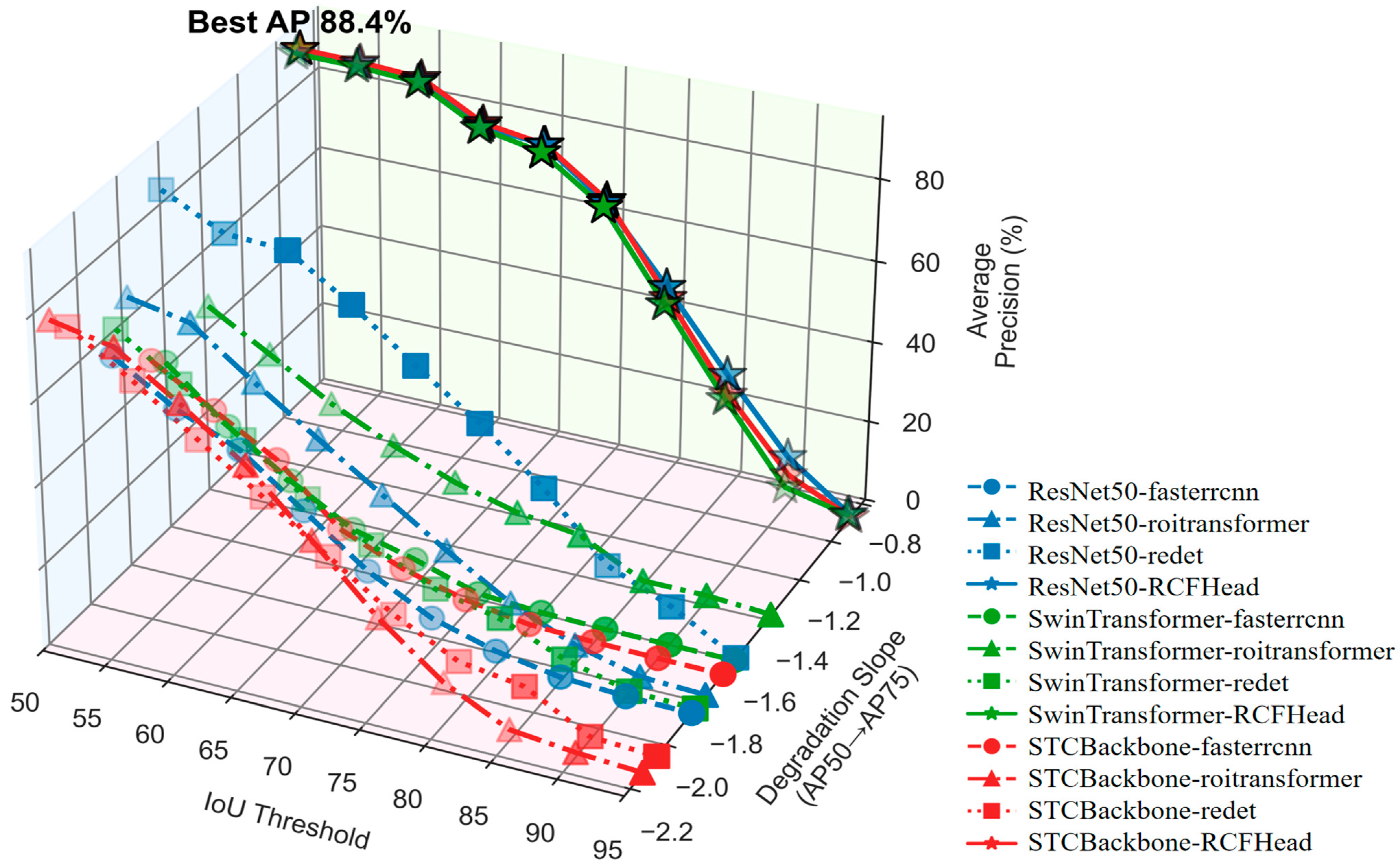 | RSDB-Net (Ours) | STCBackbone | 88.89 | 83.69 | 55.99 | 69.42 | 80.07 | 84.84 | 89.13 | 90.85 | 83.75 | 88.15 | 76.97 | 66.17 | 76.87 | 80.48 | 72.27 | 77.81 |