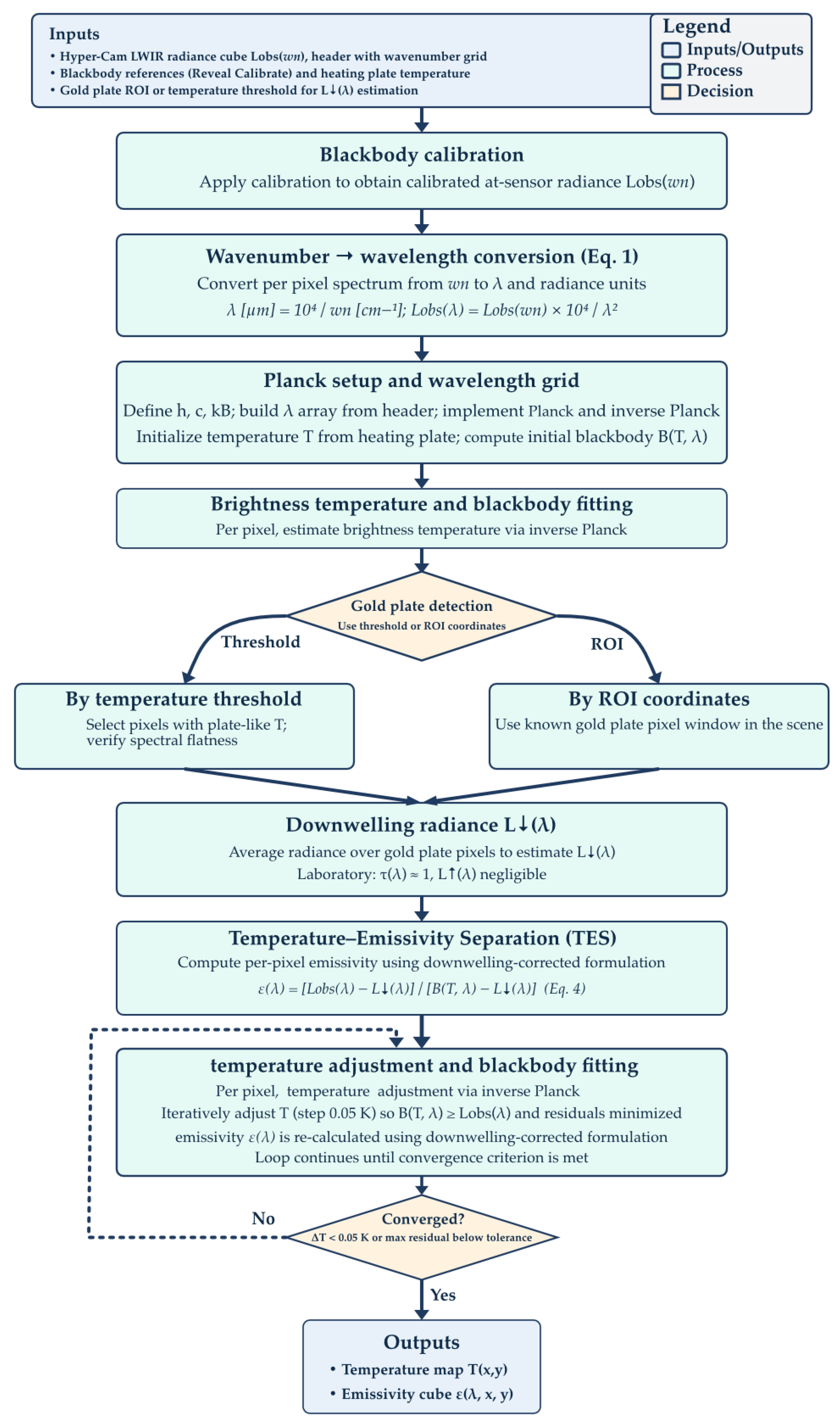 2.3.1. Laboratory TES Using a Blackbody Fitting Approach