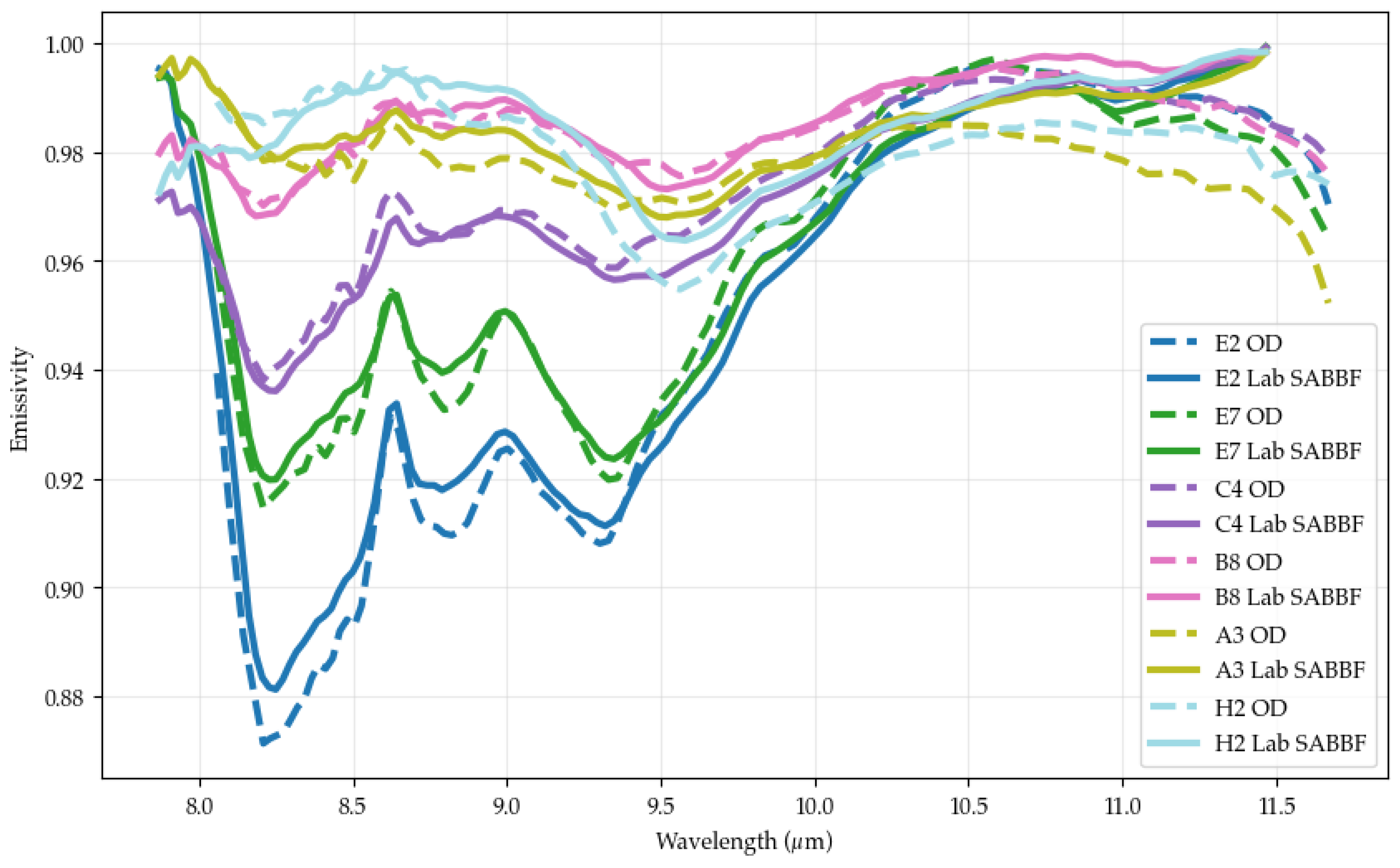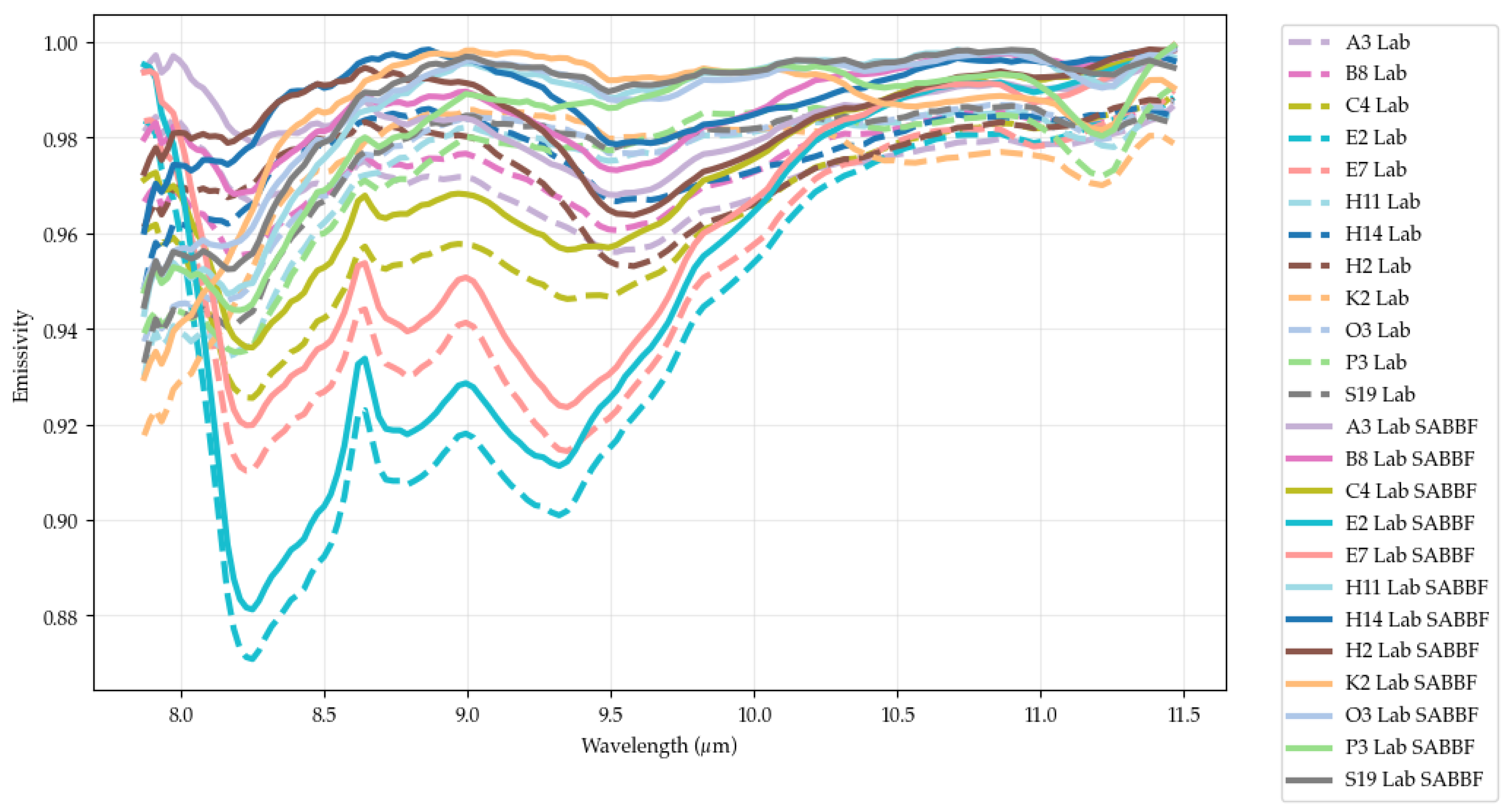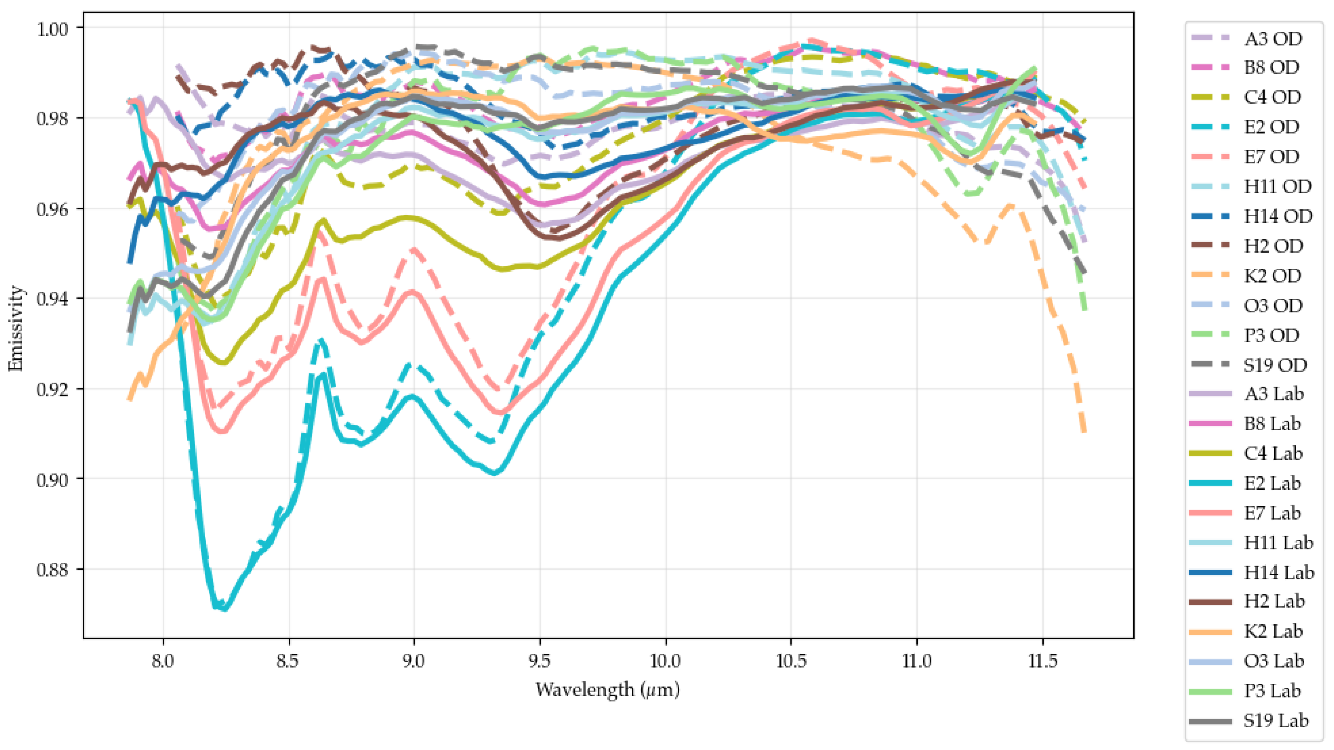 - Imaging laboratory spectroscopy in the longwave infrared (LWIR) range allows reliable and repeatable measurements of soil emissivity.