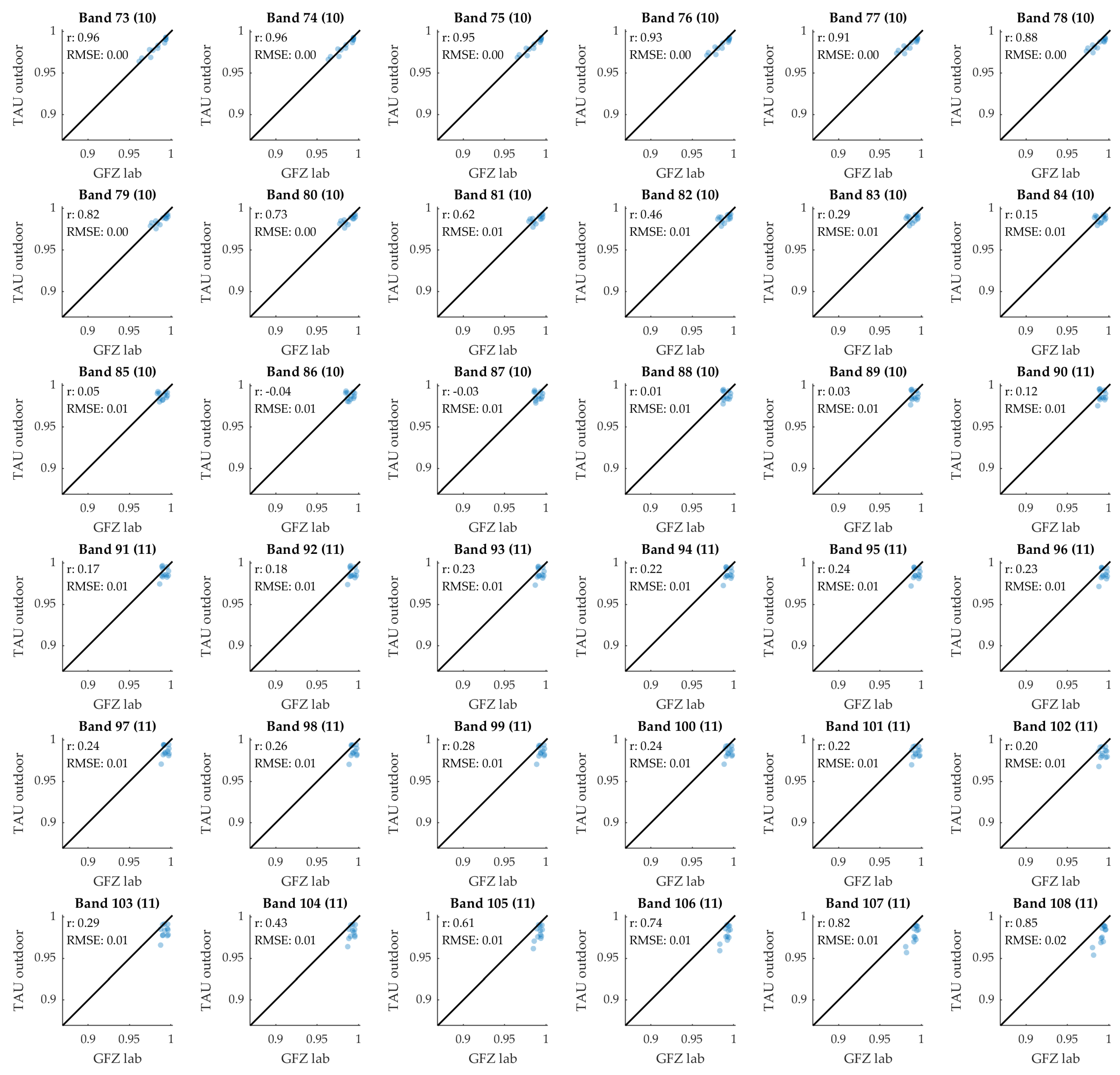 - Kopačková, V.; Ben-Dor, E.; Carmon, N.; Notesco, G. Modelling Diverse Soil Attributes with Visible to Longwave Infrared Spectroscopy Using PLSR Employed by an Automatic Modelling Engine. Remote Sens. 2017, 9, 134. [Google Scholar] [CrossRef]