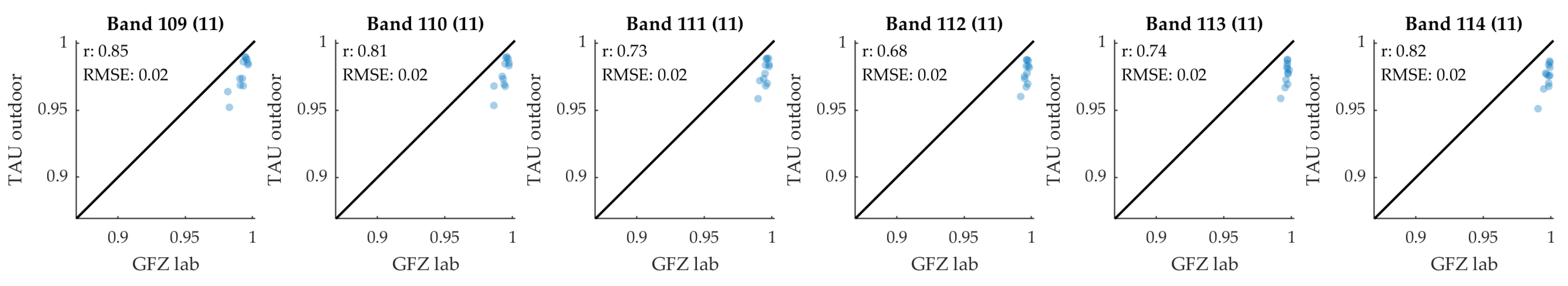 - Shepherd, J.E.; Kanner, O.; Amir, O.; Efrati, B.; Ben-Dor, E. Long-Term Stability of Soil Spectral Libraries with Chemical and Spectral Insights. Sci. Rep. 2025, 15, 9068. [Google Scholar] [CrossRef]