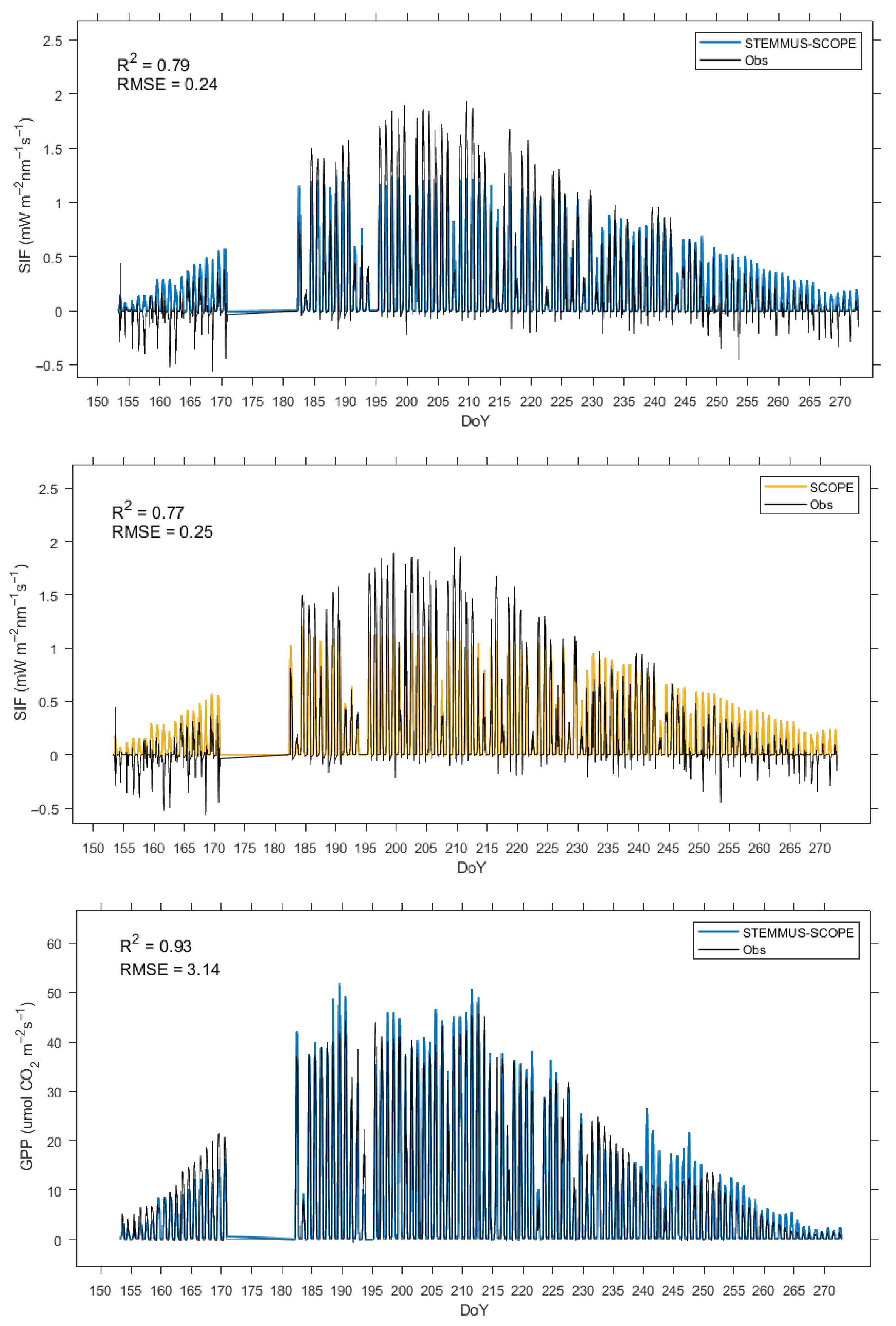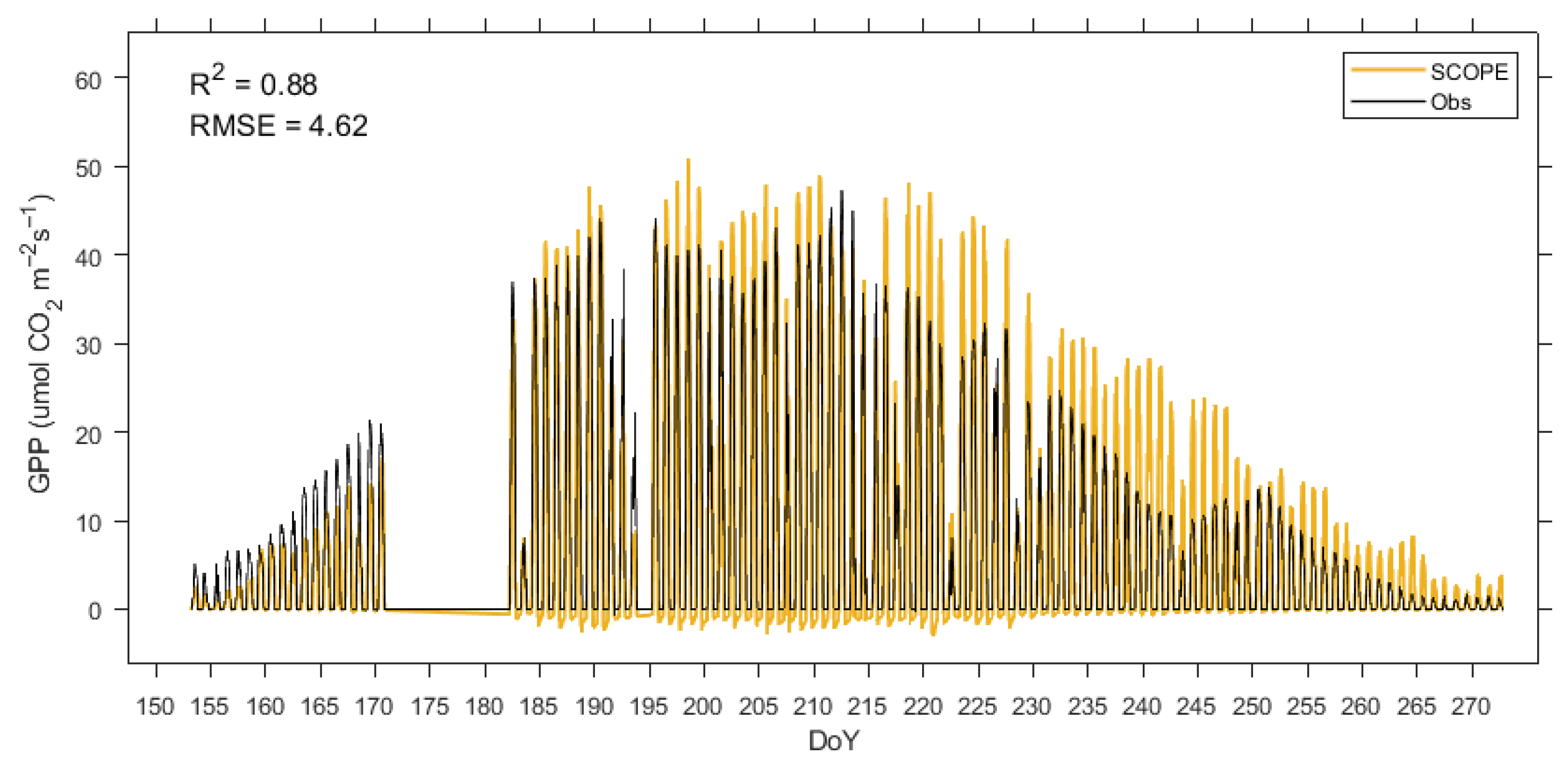 4.1. Performance of the STEMMUS-SCOPE Model for SIF and GPP Under Drought Stress