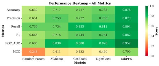 TabPFN was implemented using its default pretrained configuration, thereby eliminating the need for hyperparameter optimization while leveraging its transformer-based prior-fitting architecture.