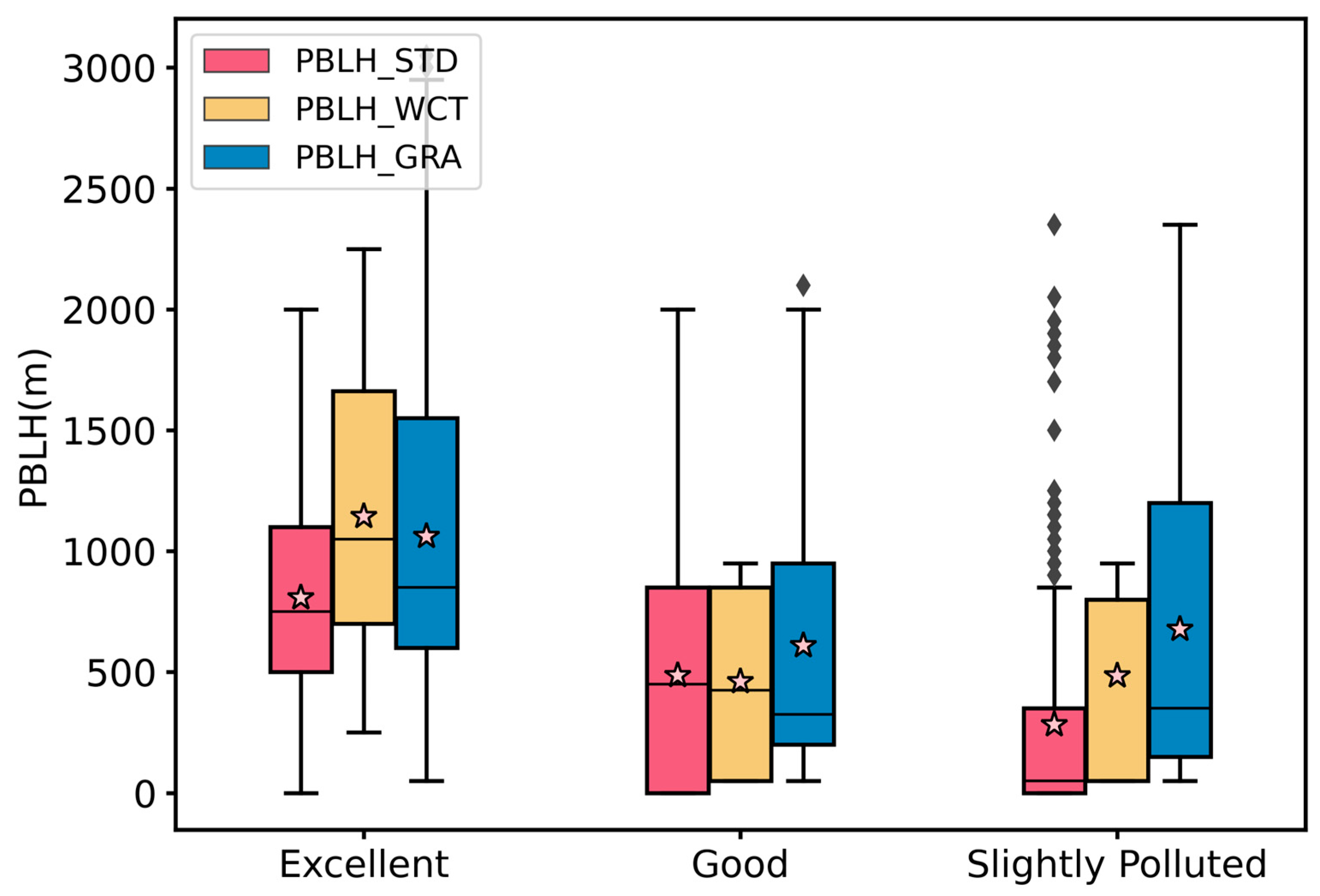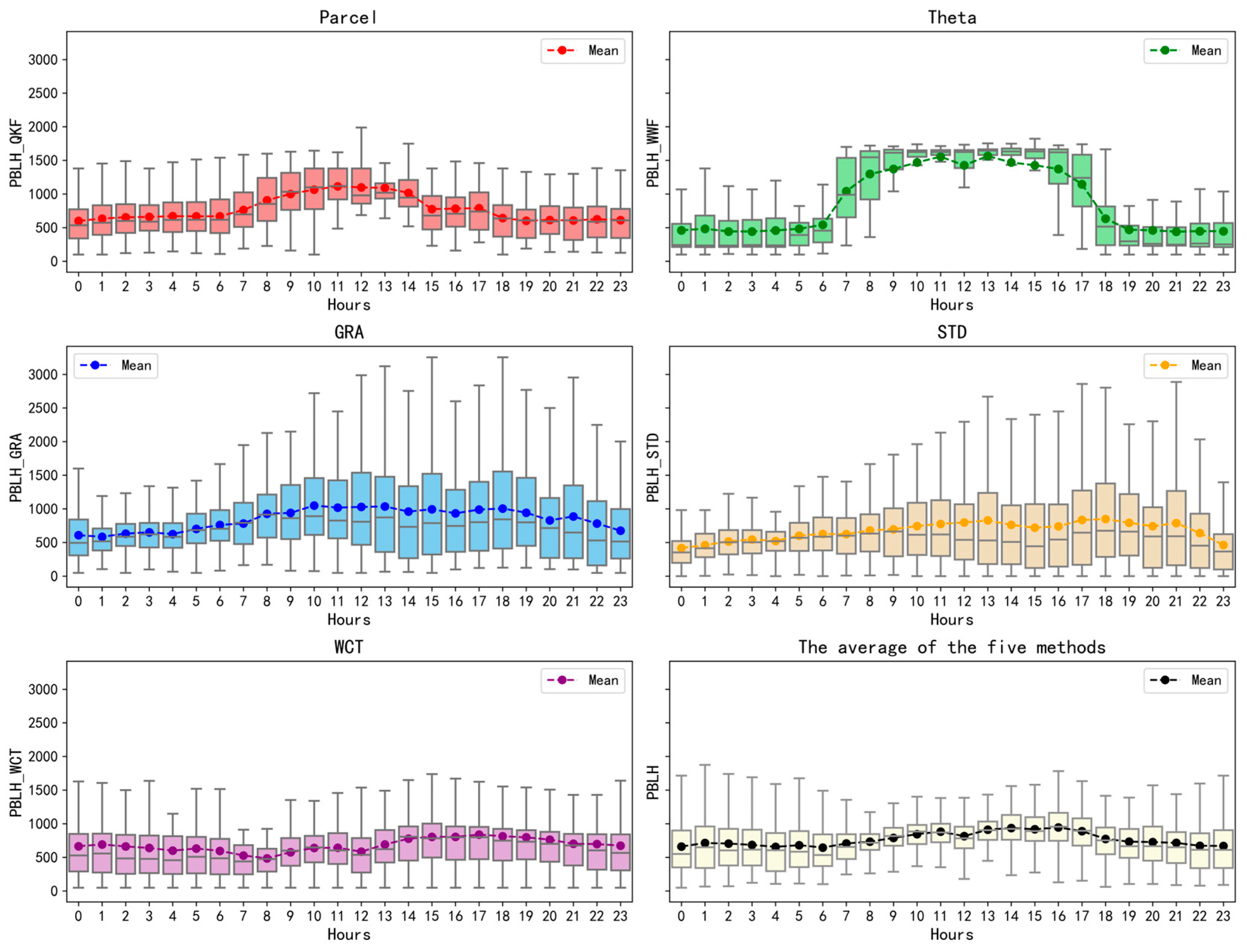 | WCT | Effectively identifies PBLH based on temperature gradients, suitable for both stable and unstable atmospheric conditions. | It may produce errors when identifying inversion layers. |