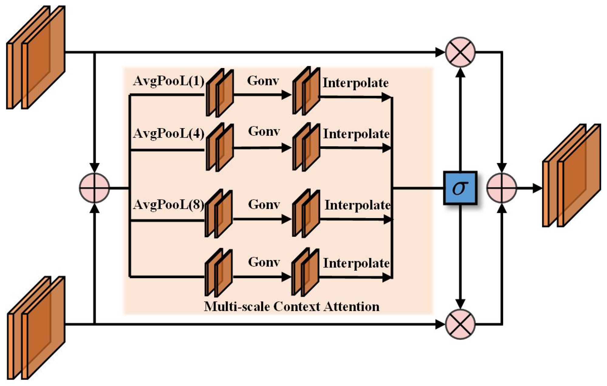 Multi-Scale Context Attention (MCA): To capture broader contextual information and enrich feature diversity, we first construct a fused feature map by summing the visible and SAR features: