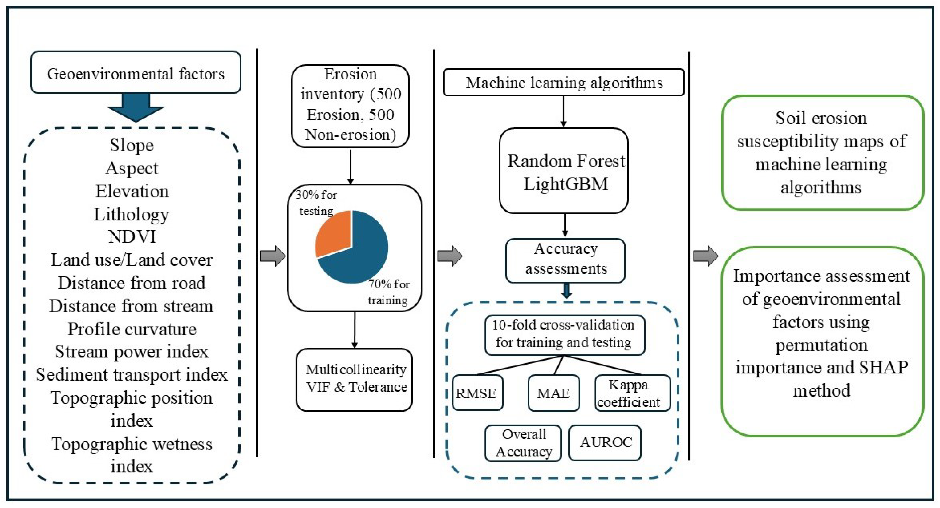 Chicago/Turabian StyleNooshin Nokhandan, Fatemeh, Kaveh Ghahraman, Ágnes Novothny, and Erzsébet Horváth. 2025. "Advancing Soil Erosion Mapping in Active Agricultural Lands Using Machine Learning and SHAP Analysis" Remote Sensing 17, no. 24: 3950. https://doi.org/10.3390/rs17243950