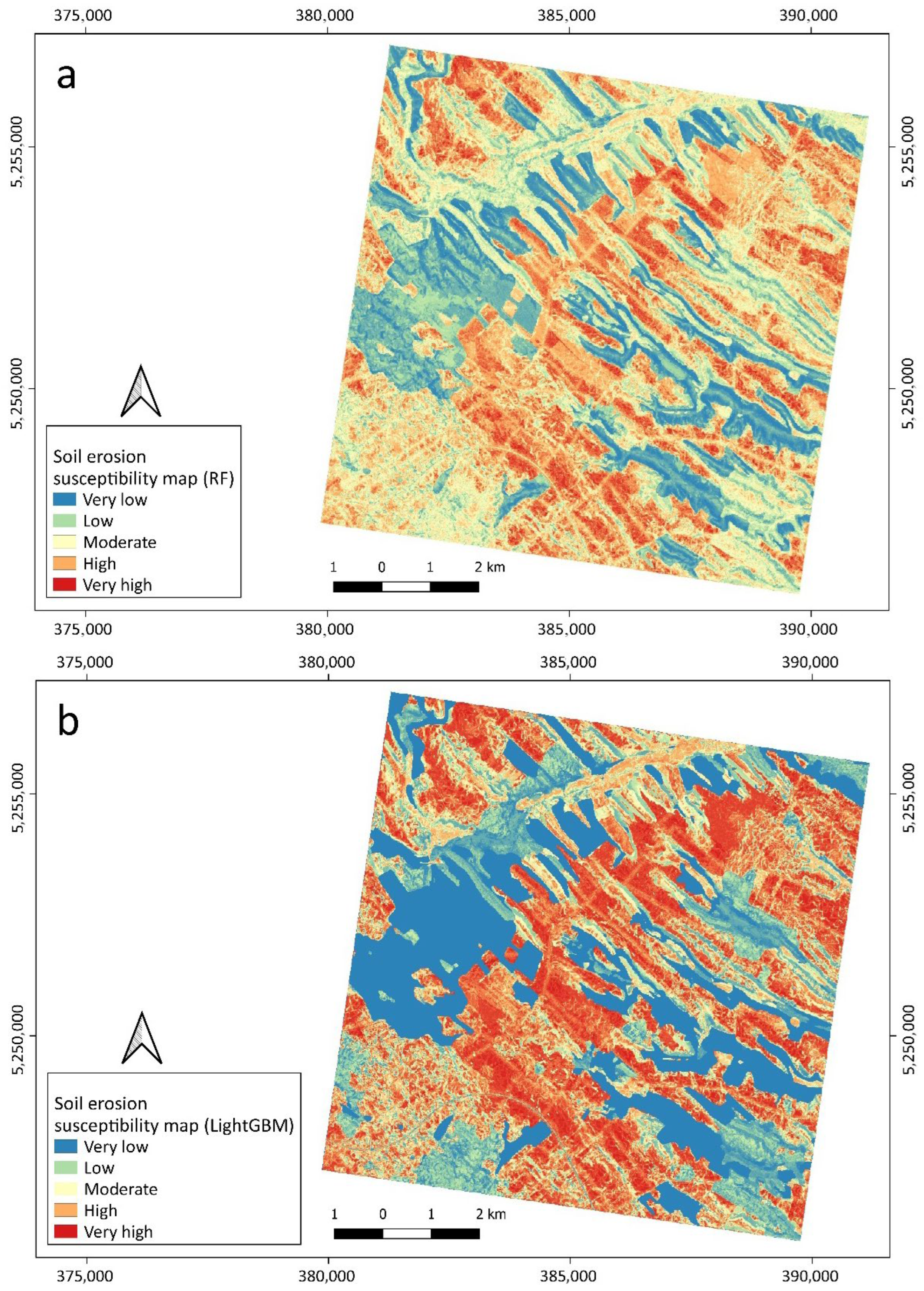 - Random Forest and LightGBM models effectively captured the spatial variability of soil erosion susceptibility in loess-covered agricultural lands, demonstrating the utility of machine learning for mapping environmental hazards.