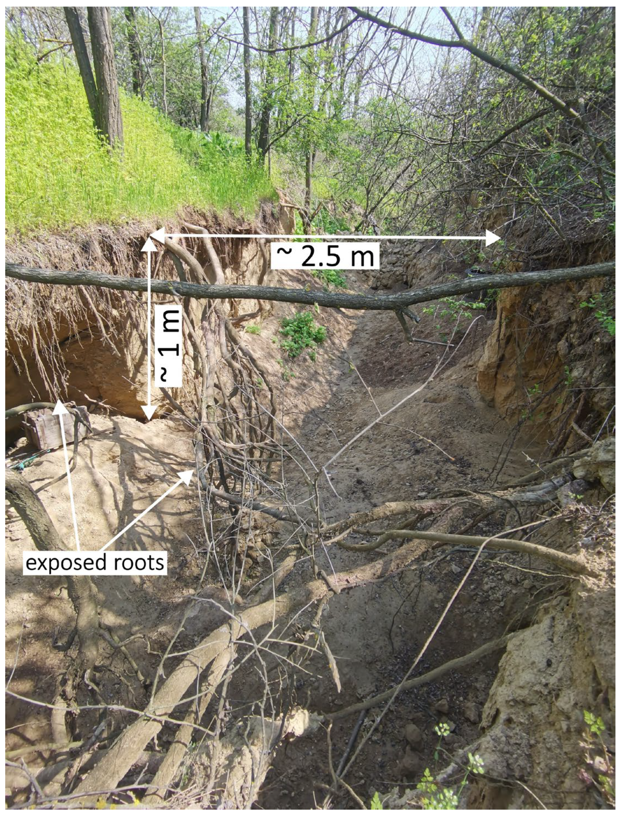 - Gábris, G.; Kertész, Á.; Zámbó, L. Land Use Change and Gully Formation over the Last 200 Years in a Hilly Catchment. CATENA 2003, 50, 151–164. [Google Scholar] [CrossRef]