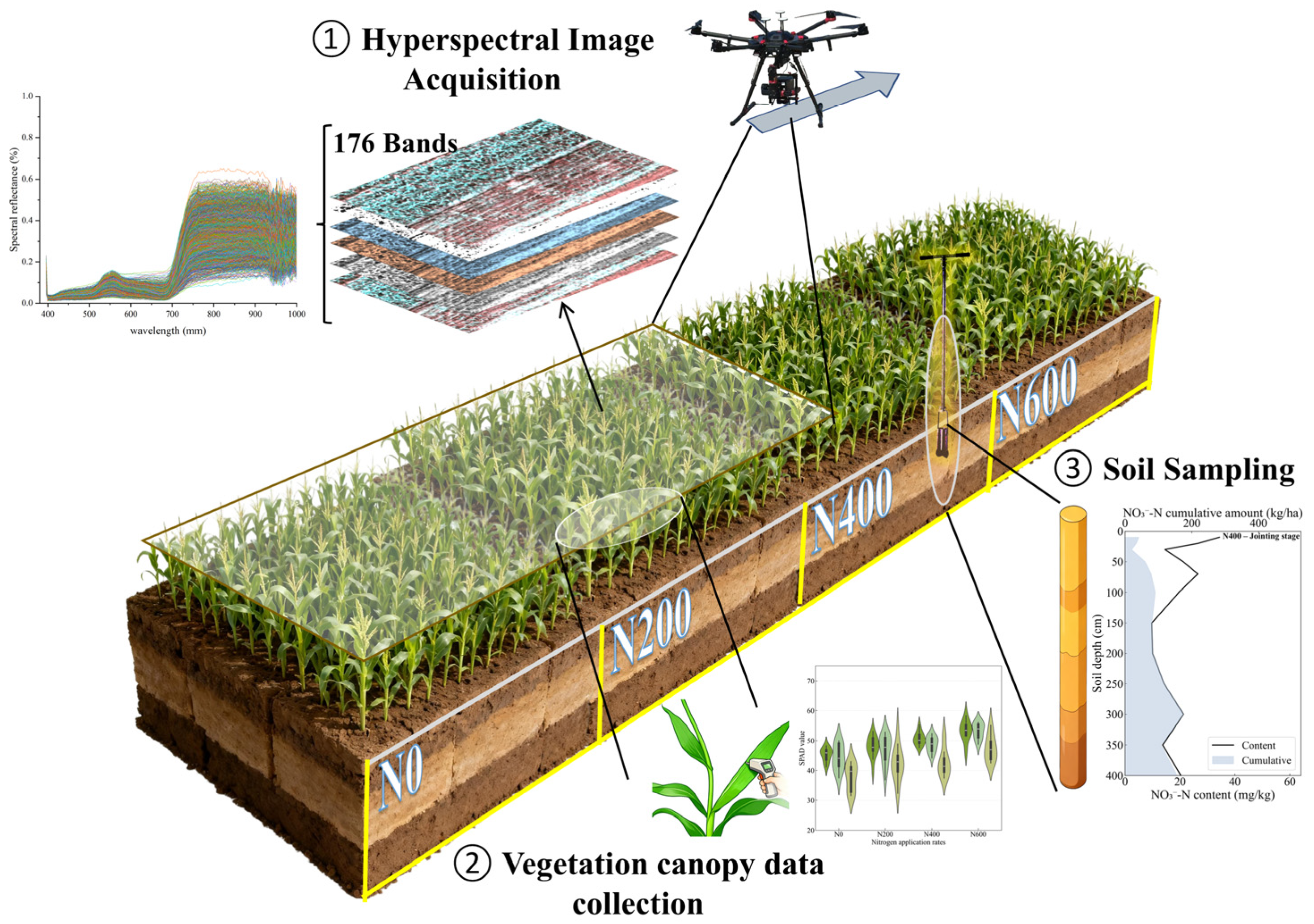 - Crop hyperspectral data can be utilized to retrieve topsoil nitrate nitrogen content.
