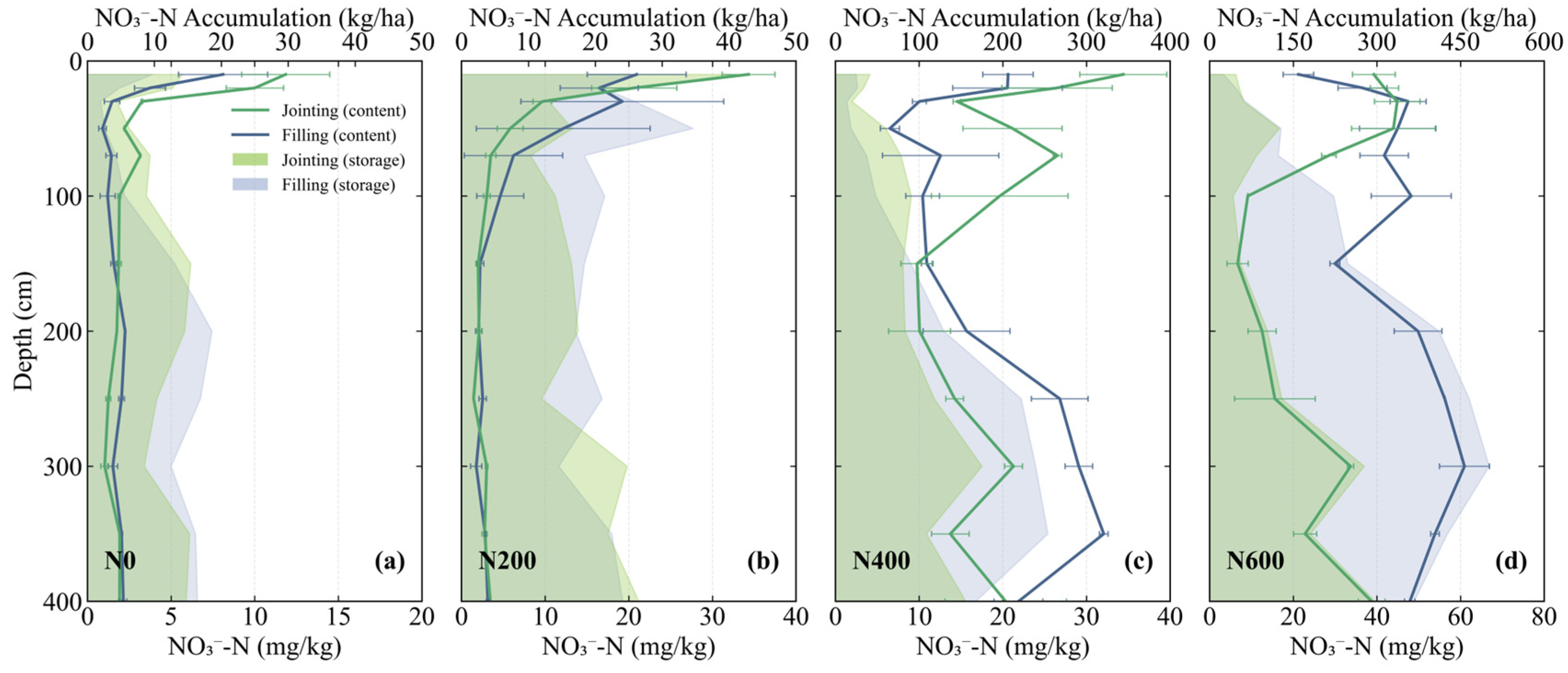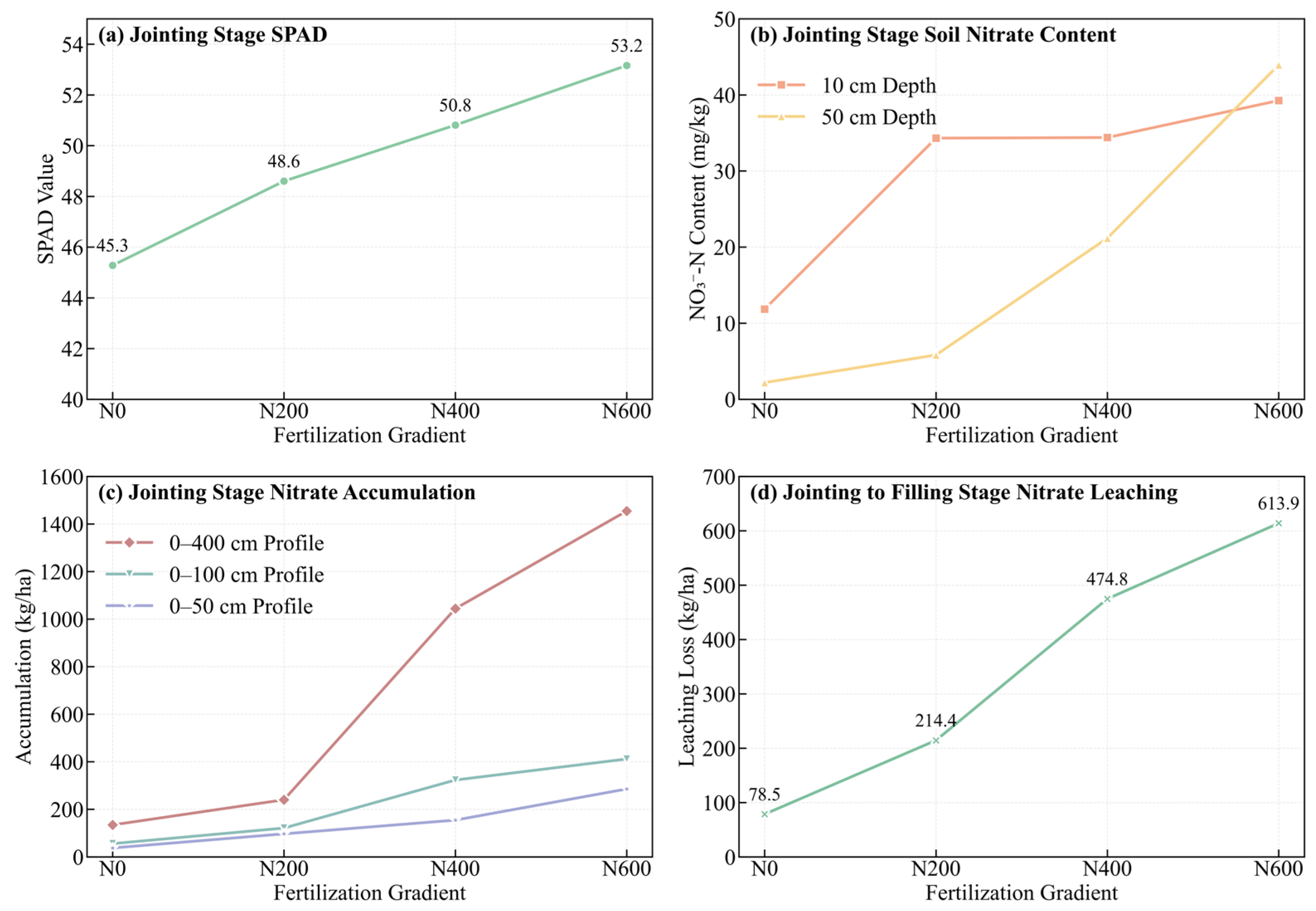 - In long-term stable wheat-maize rotation systems, the remote sensing retrieval results of soil nitrate nitrogen during the maize jointing stage can be used to estimate the leaching of nitrate nitrogen to deep soil layers during the period from the rainy sea-son to the filling stage.