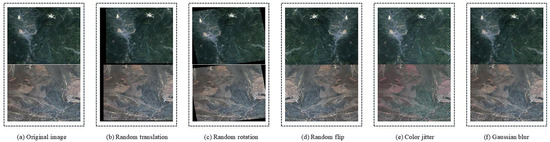 To further bolster the dataset’s robustness and mitigate overfitting, we applied an extensive data augmentation regimen during the training phase. This regimen incorporates both geometric and photometric transformations, including random rotational transformations within a range of ±45 degrees, horizontal and vertical mirroring (flipping), color jittering through controlled adjustments to brightness, contrast, and saturation, as well as the regulated introduction of Gaussian noise and blur simulation to approximate atmospheric and sensor-derived degradations. A schematic overview of this enhancement pipeline is illustrated in Figure 2.