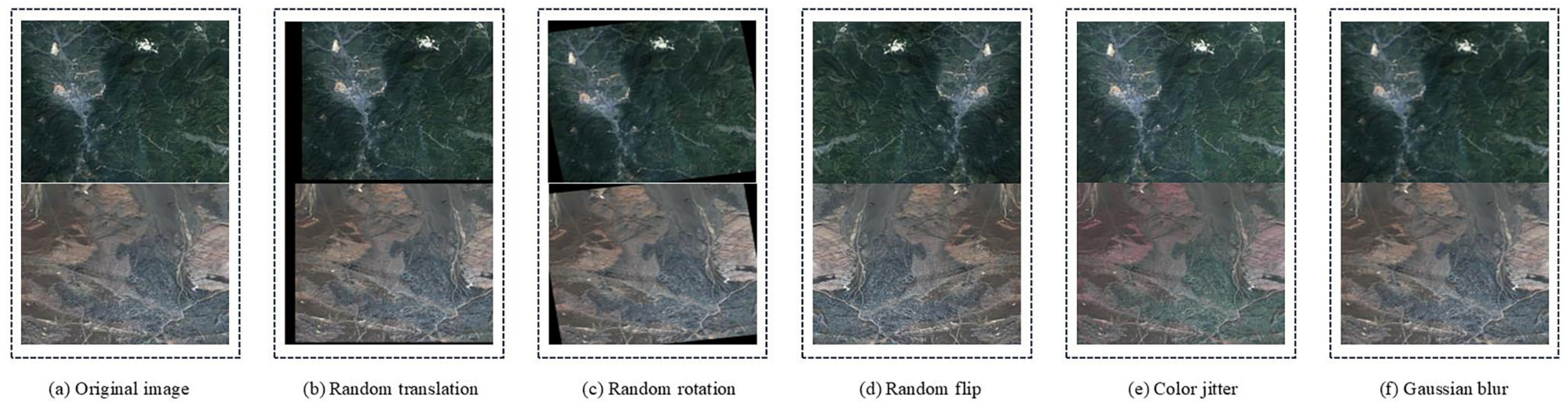 - Perceptual Loss [38]: Calculated in the feature space of a pre-trained VGG-19 network [38], this loss term focuses on maintaining semantic consistency between generated images and reference HR images. It does not directly compare pixel-level differences but instead aligns high-level feature representations, which is critical for preserving the ecological and geometric characteristics unique to remote sensing imagery (e.g., land cover patterns, terrain structures). The formula is defined as: