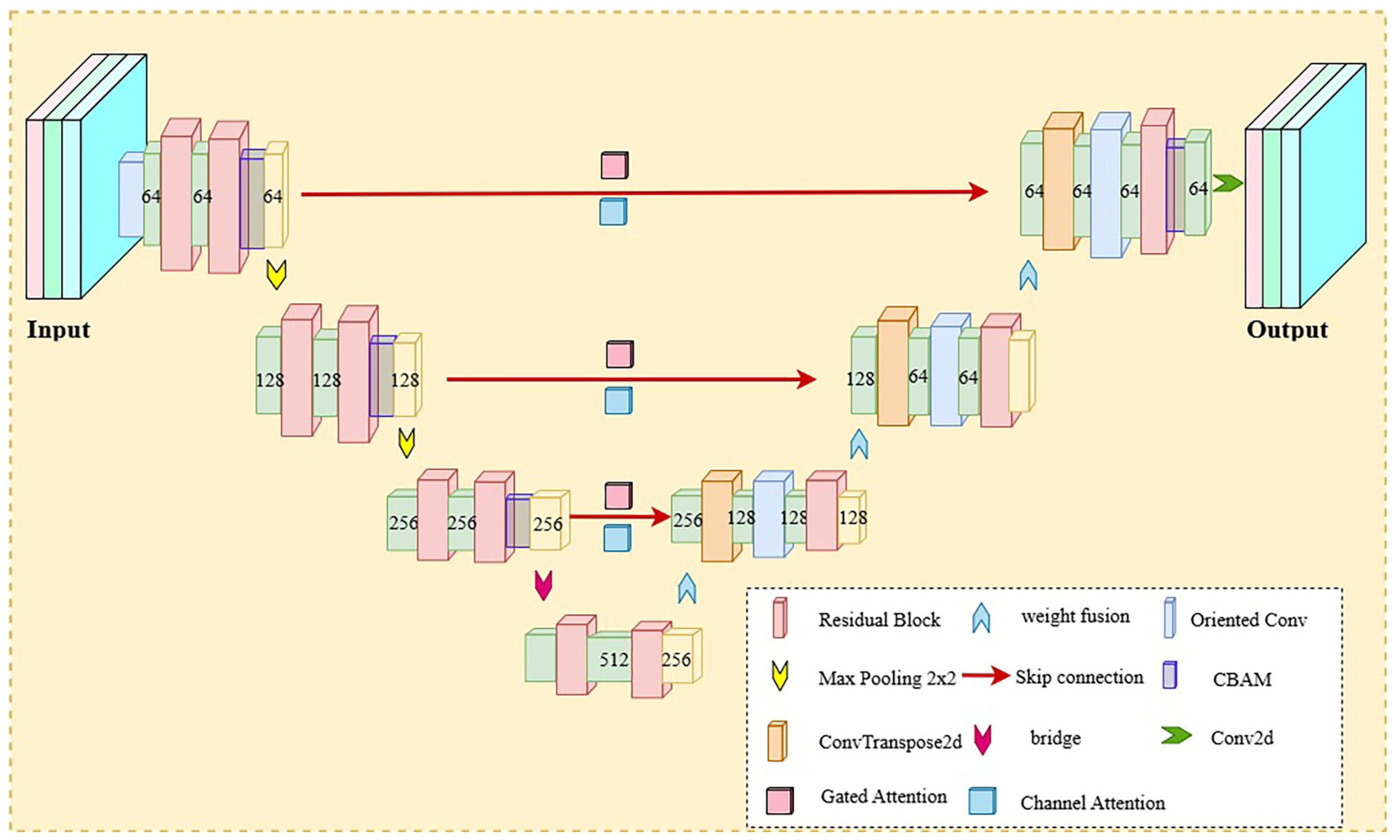 - Multi-Attention Mechanism: A coordinated attention system refines features through the following components:Channel Attention: An enhanced variant of the Squeeze-and-Excitation network combines global average and max pooling. The resulting features are processed by a two-layer MLP with a reduction ratio of 8, generating channel-wise weights that emphasize semantically important features.Gated Attention: This module enables cross-scale feature interaction via theta (feature transformation) and phi (context extraction) branches. A sigmoid gating mechanism dynamically calibrates spatial relevance, while residual connections help maintain gradient stability.Spectral Attention: Designed specifically for multispectral data, this module captures inter-band correlations essential for color fidelity. Dimensional stability is ensured by setting the internal reduction channel to max(1, channels//reduction).