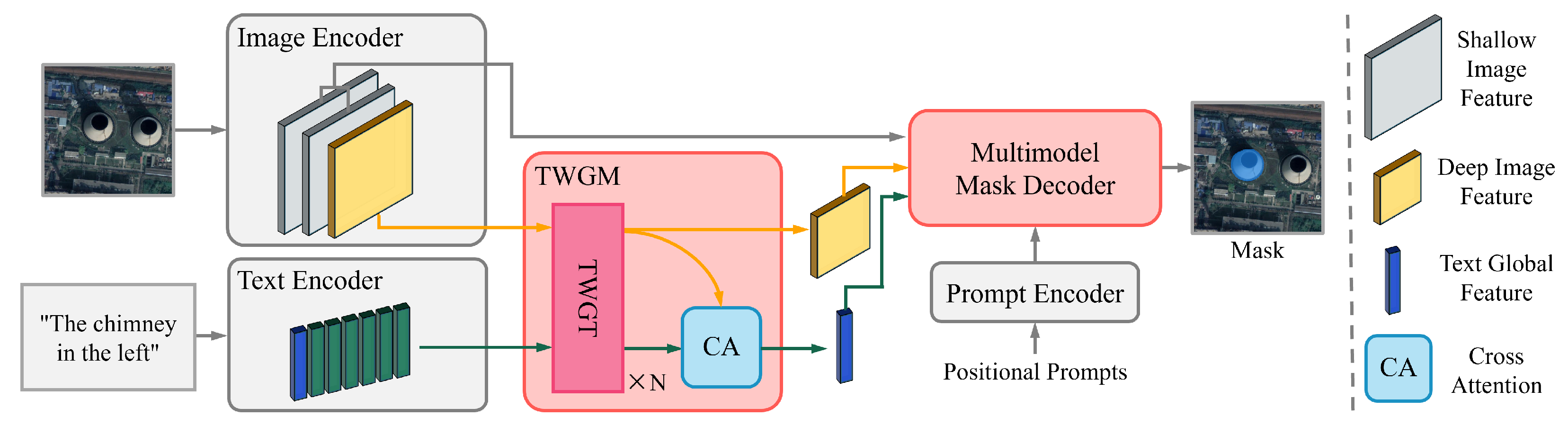 - The design of TWGM and MMMD demonstrates an effective approach for achieving robust cross-modal alignment and precise text-prompted segmentation in complex remote sensing scenarios.