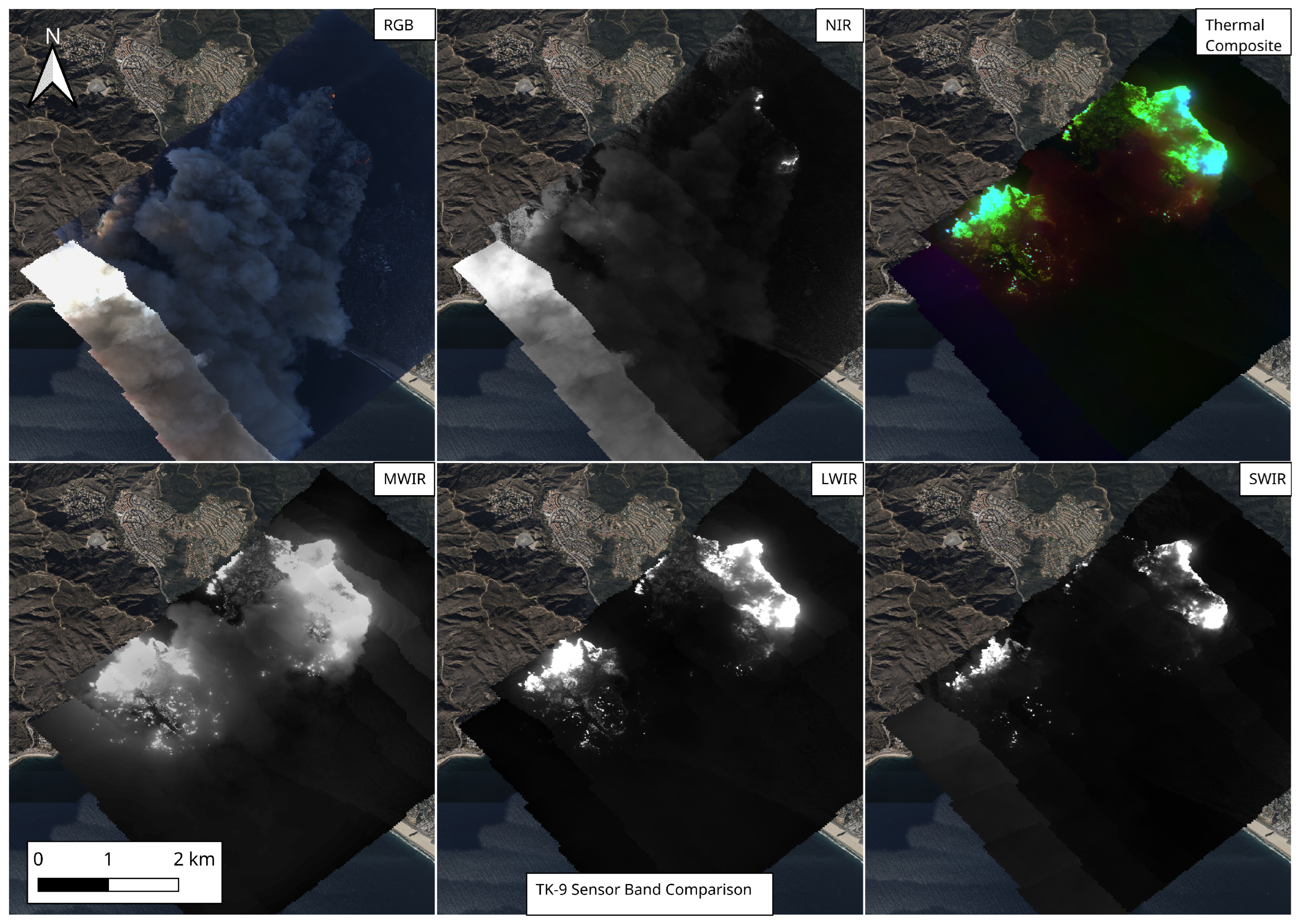 Trivedi, S.; al Rawaf, R.; Hart, F.; Block, J.; Nguyen, M.H.; Roten, D.; Crawl, D.; Scott, R.; Martin, M.; Pahalek, C.; et al. Advancing Wildfire Damage Assessment with Aerial Thermal Remote Sensing and AI: Applications to the 2025 Eaton and Palisades Fires. Remote Sens. 2025, 17, 3962. https://doi.org/10.3390/rs17243962