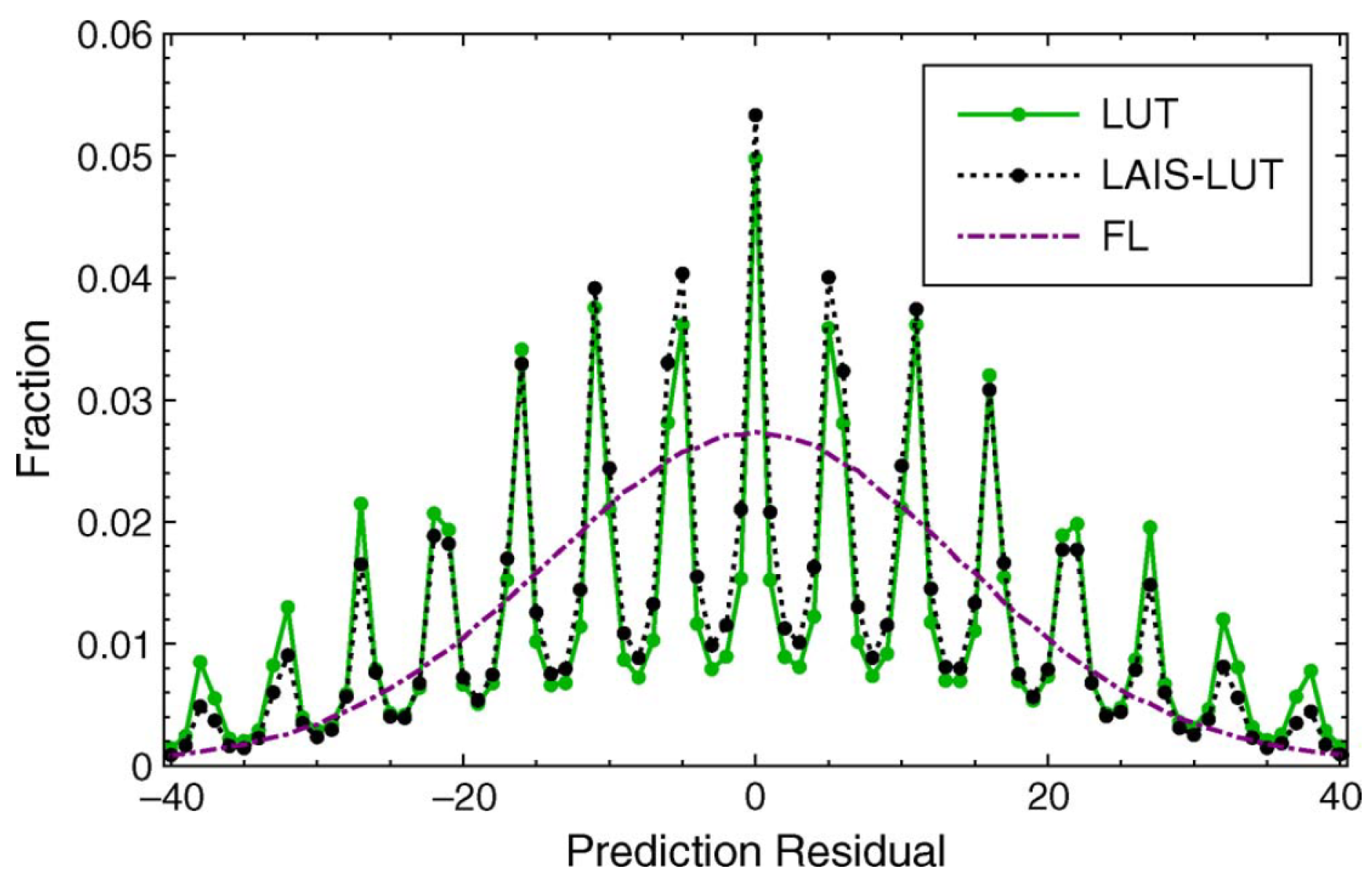 | Lookup Table with LAIS [118] | Enhances LUT by computing local scaling factors between bands; multiple candidates per index and multi-band prediction ( LUTs) | Improves prediction accuracy for outliers and captures subtle scaling effects between bands | Gains diminish as N and M increase; little improvement when LAIS approaches 1; adds computational overhead |