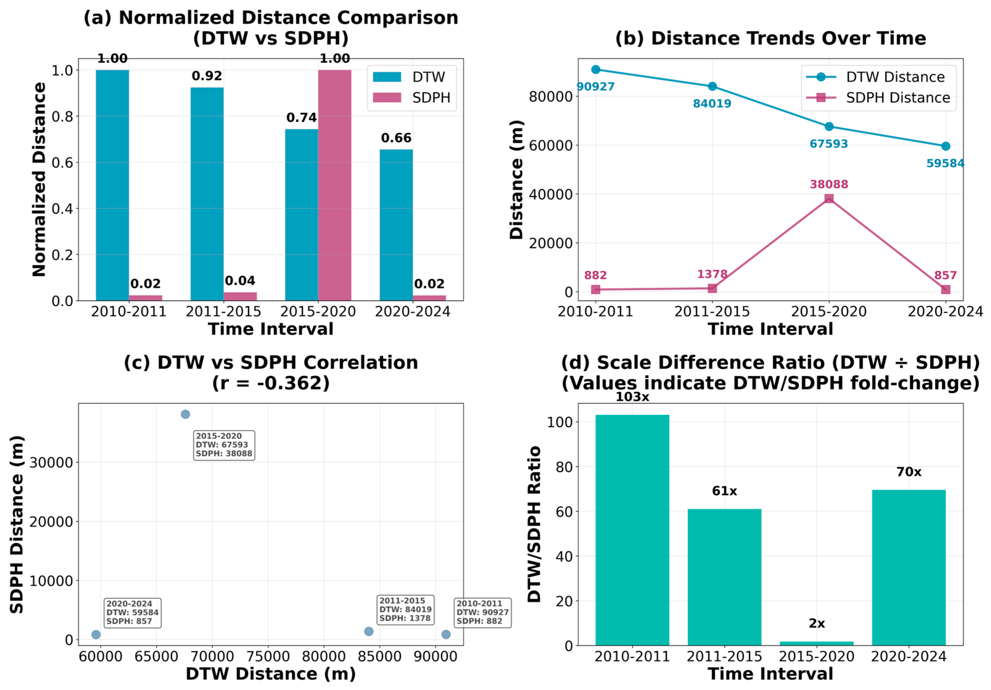 3.3. Comparative Analysis of DTW and SDPH Metrics