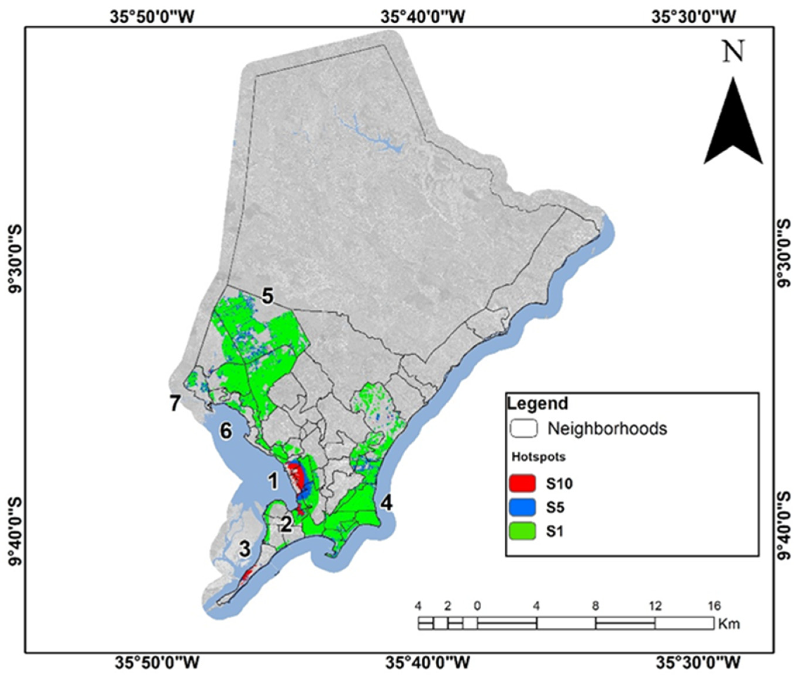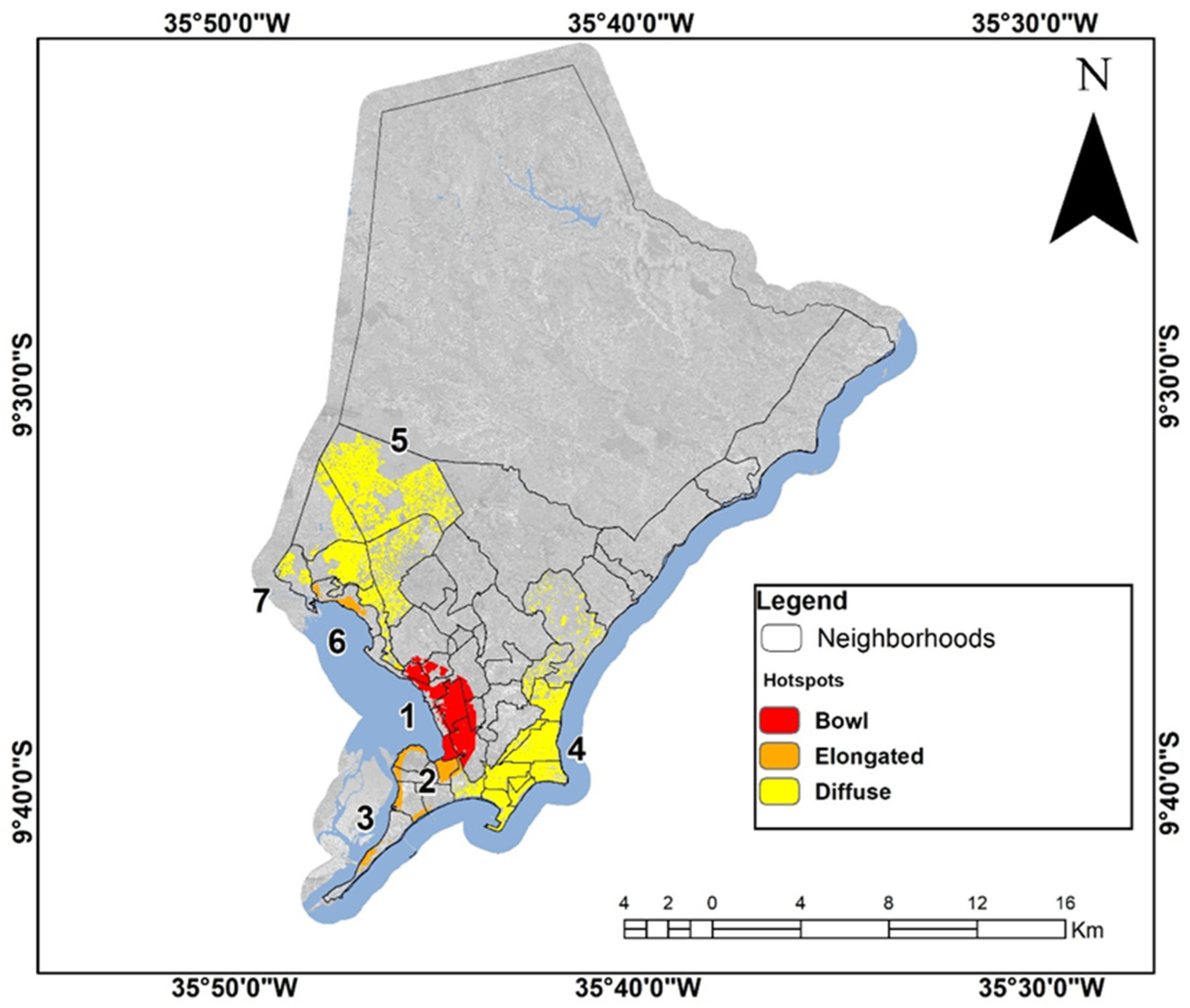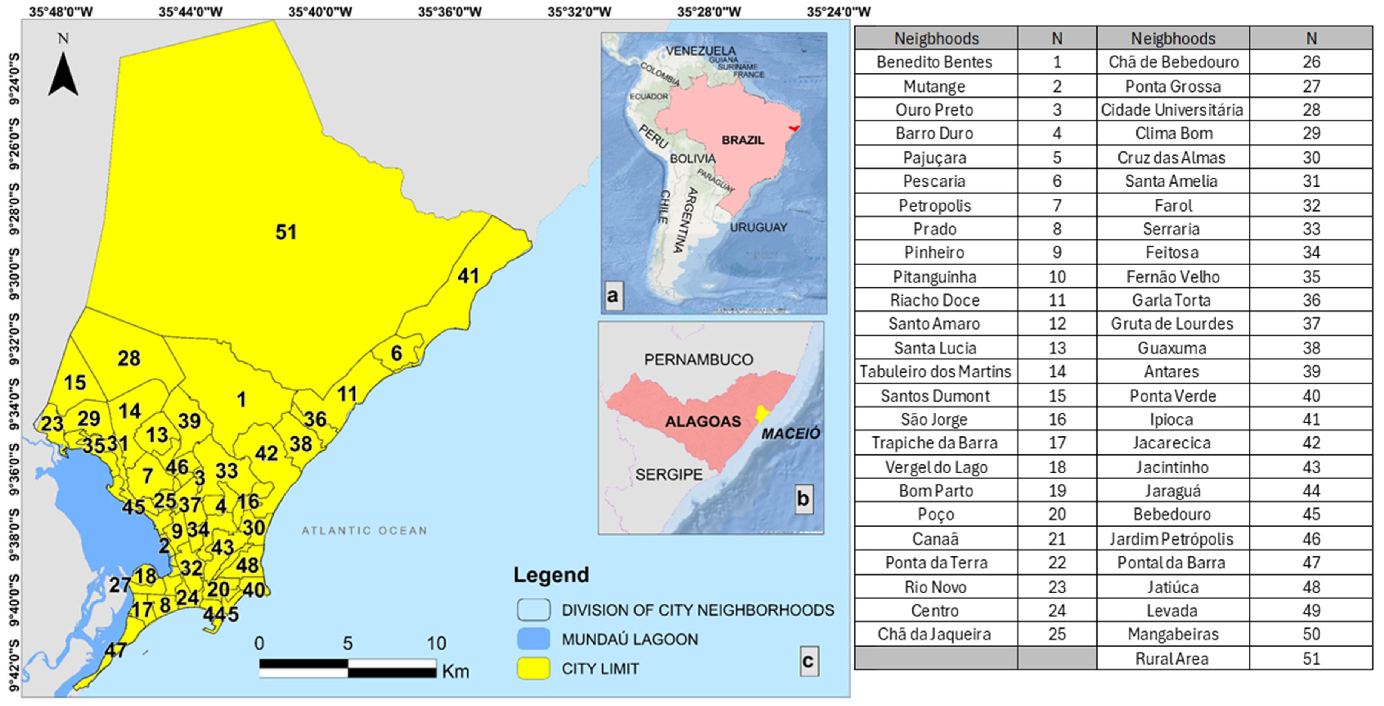 - Dantas, M.E.; Mello, L.B.; Goes, H.; Lima, V.R.A.; Gama, W.M. Carta Geomorfológica: Município de Maceió, AL (escala 1:60.000); Serviço Geológico do Brasil—CPRM: Rio de Janeiro, Brazil, 2004.