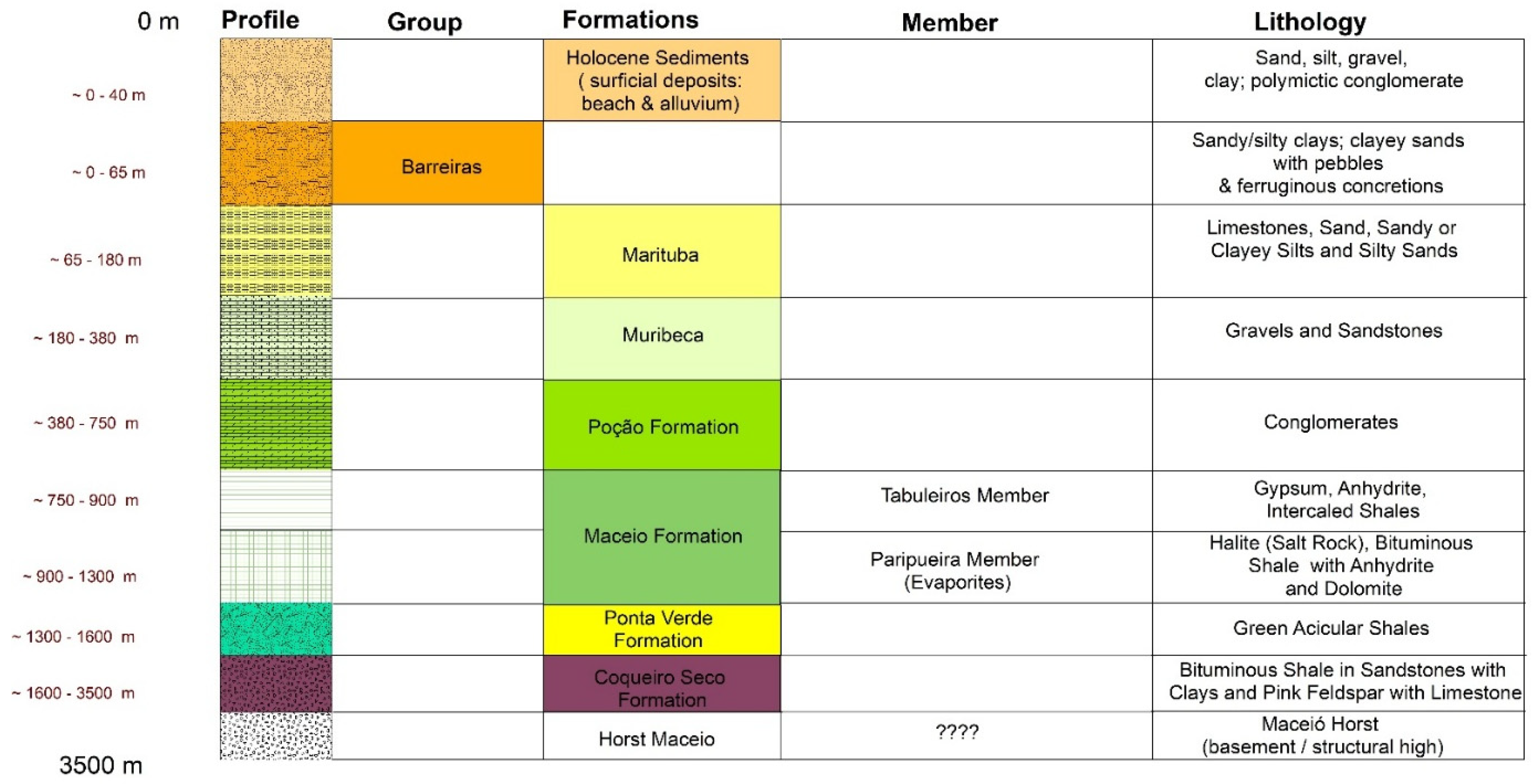 - Mendes, V.A.; Lima, M.A.B.; Moraes, D.M.F.; de Fátima Lyra Brito, M. Geologia e recursos minerais do estado de Alagoas: Escala 1:250.000; CPRM: Rio de Janeiro, Brazil, 2017; ISBN 978-85-7499-304-1. [Google Scholar]