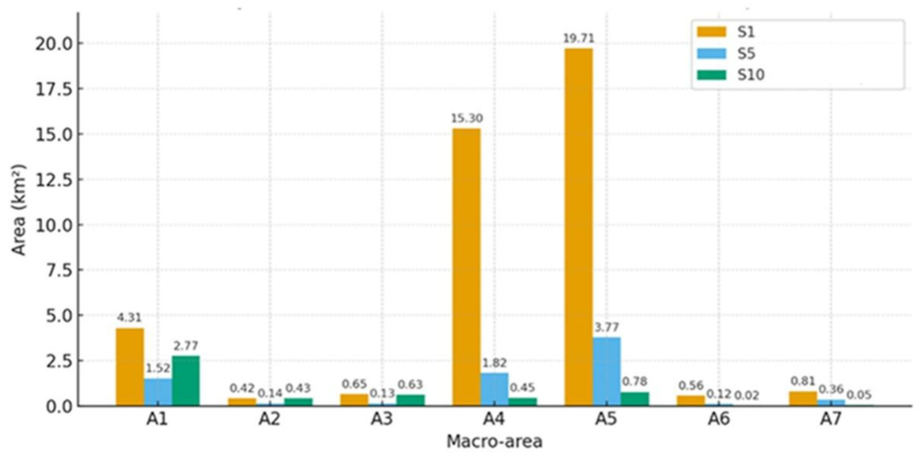 | Macro-Area | S1 | S5 | S10 | Total (S1 + S5 + S10) | % of Footprint |