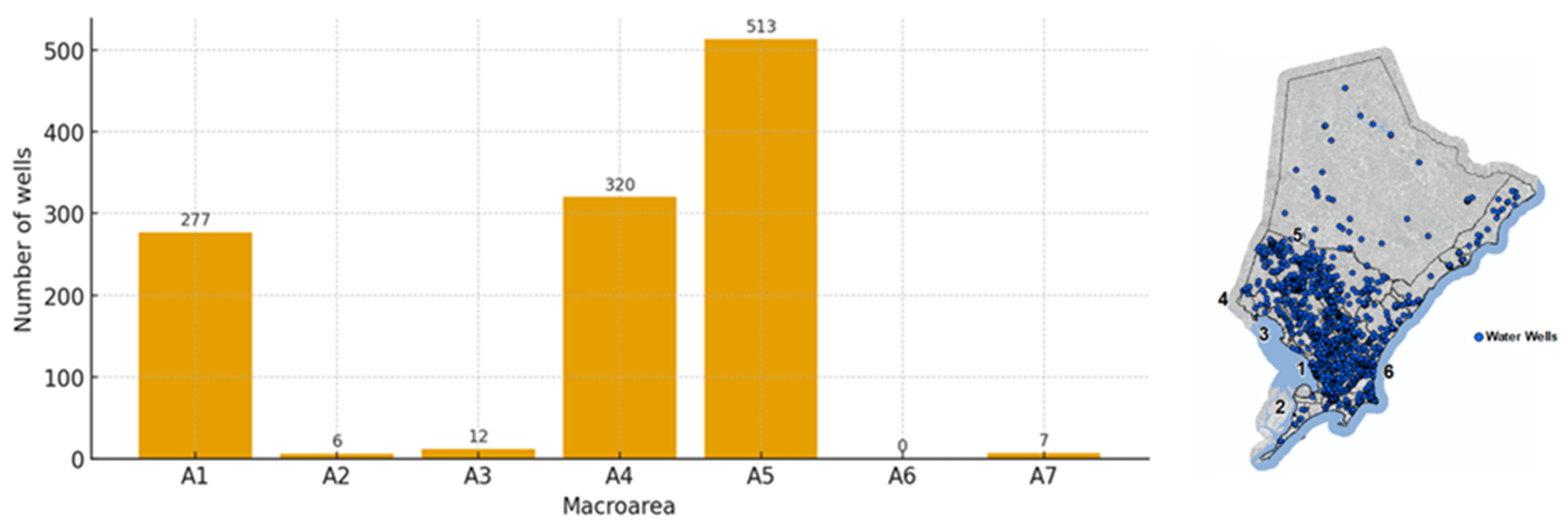 - Bueno Da Fonseca Cardoso, F.; De Oliveira, F.R.; Gonçalves, M.; Soares Do Nascimento, F. Disponibilidade Hídrica Subterrânea Na Região Metropolitana De Maceió-Al. Águas Subterrâneas. 2012. Available online: https://aguassubterraneas.emnuvens.com.br/asubterraneas/article/view/27717 (accessed on 7 July 2025).