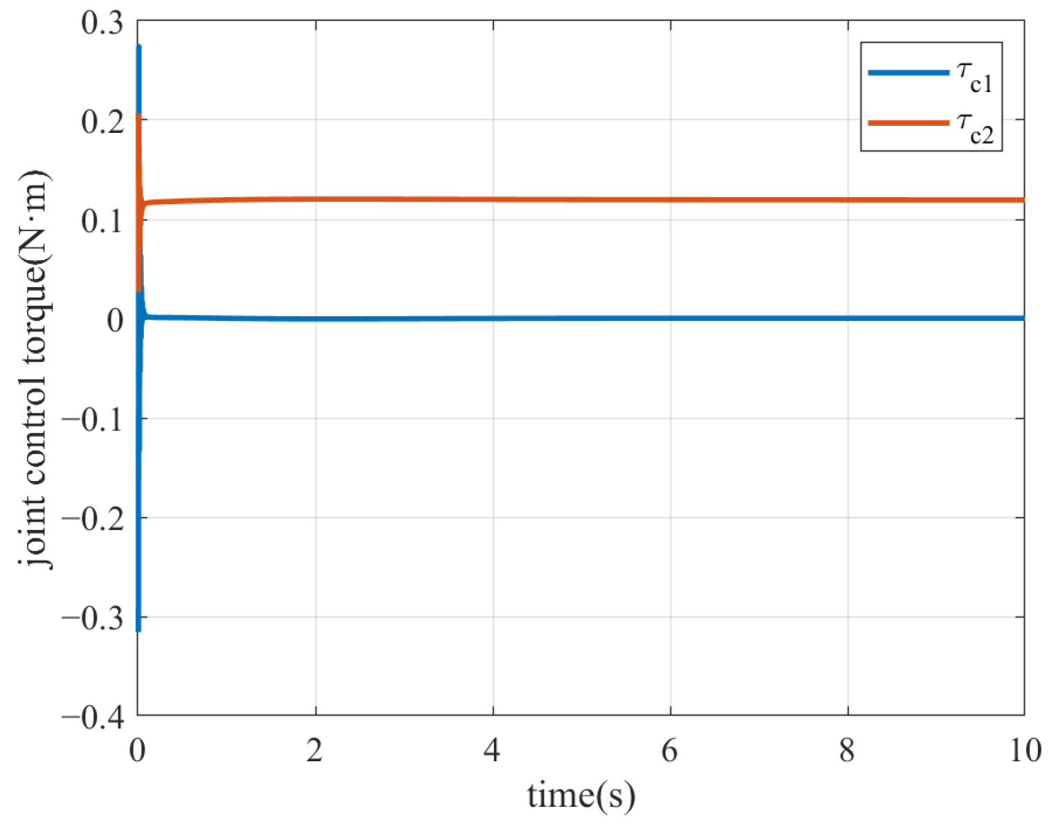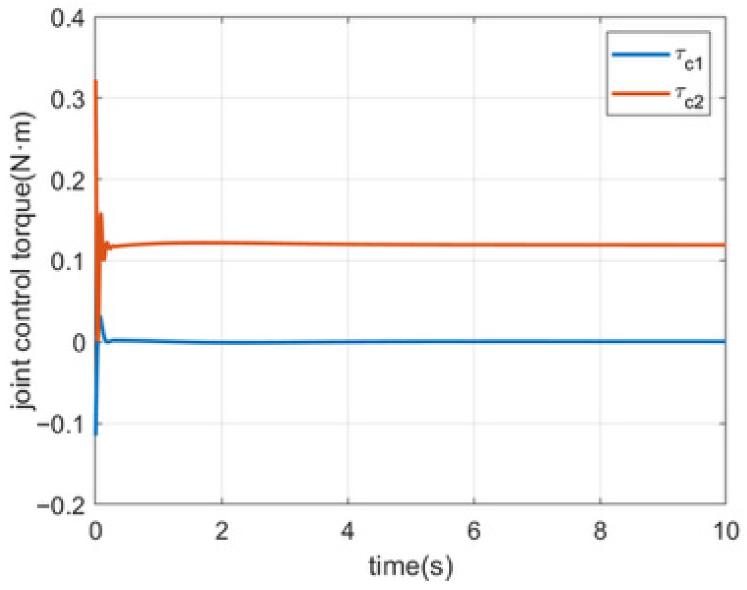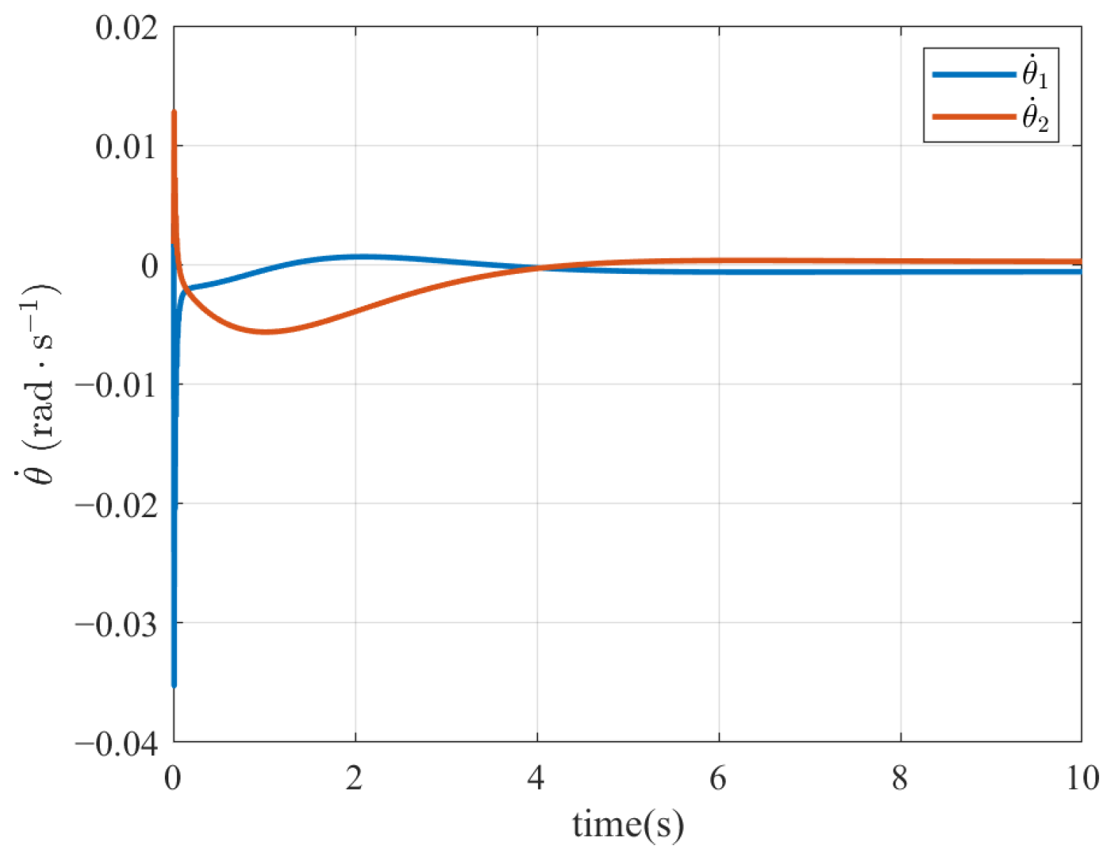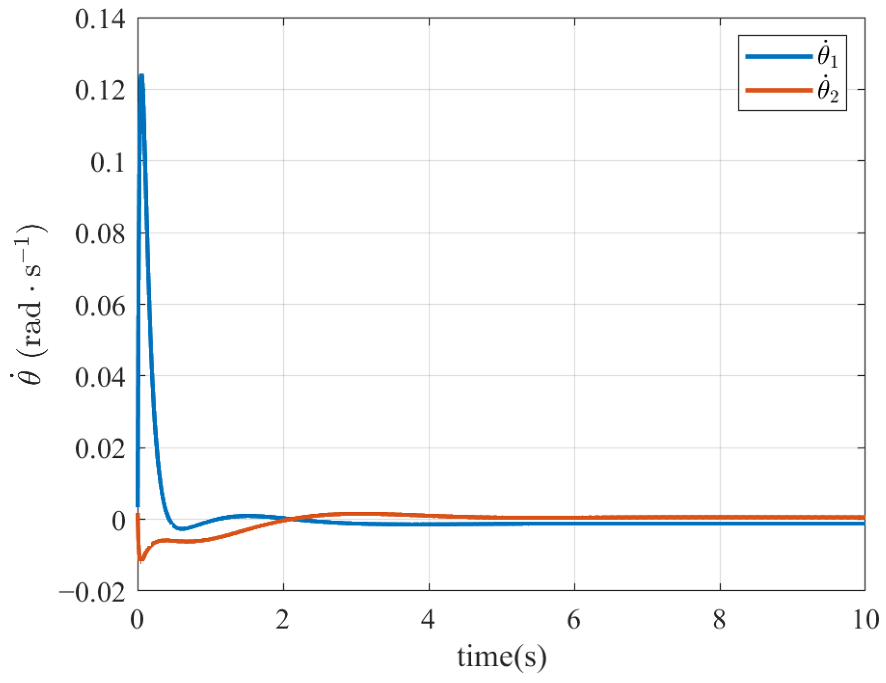 The simulation results of the position-based tracking method (51), including the variation curves of the angular velocity and the control torque of the pan-tilt system, as well as the target’s projection coordinate and trajectories on the image plane are shown in