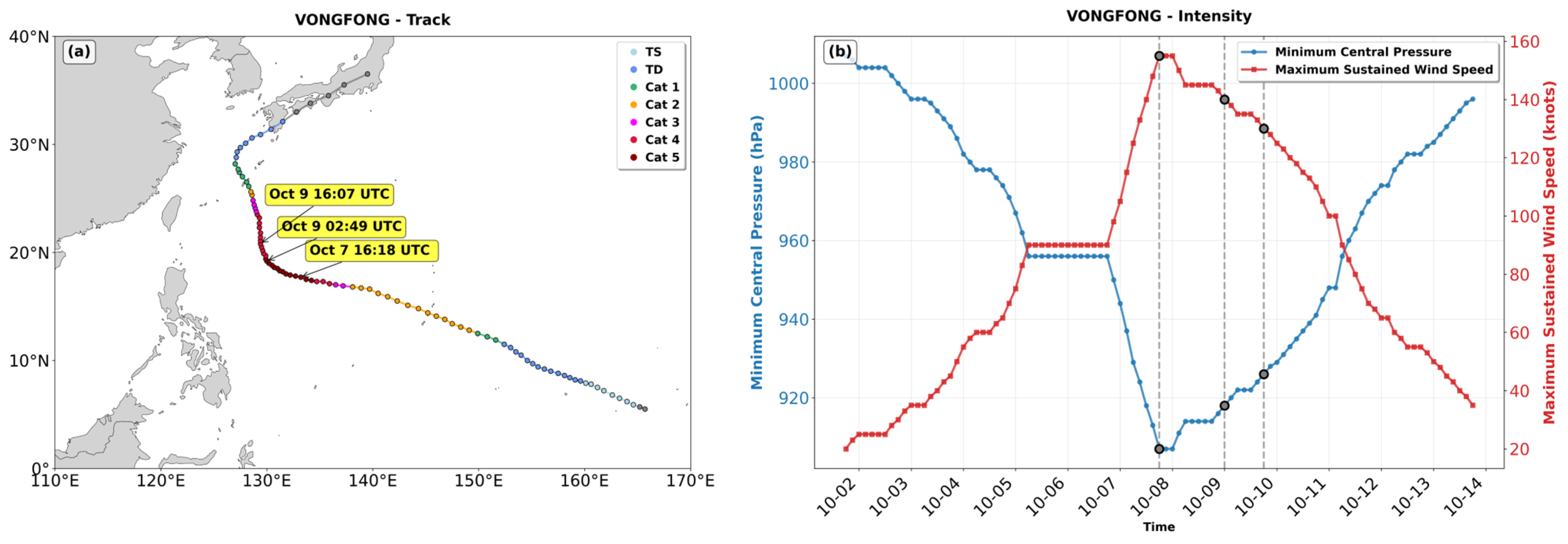 - The Weather Channel. Super Typhoon Vongfong Becomes Strongest Storm on Earth. 2014. Available online: https://weather.com/storms/hurricane/news/vongfong-satellite-images-strongest-storm-20141010 (accessed on 7 October 2025).