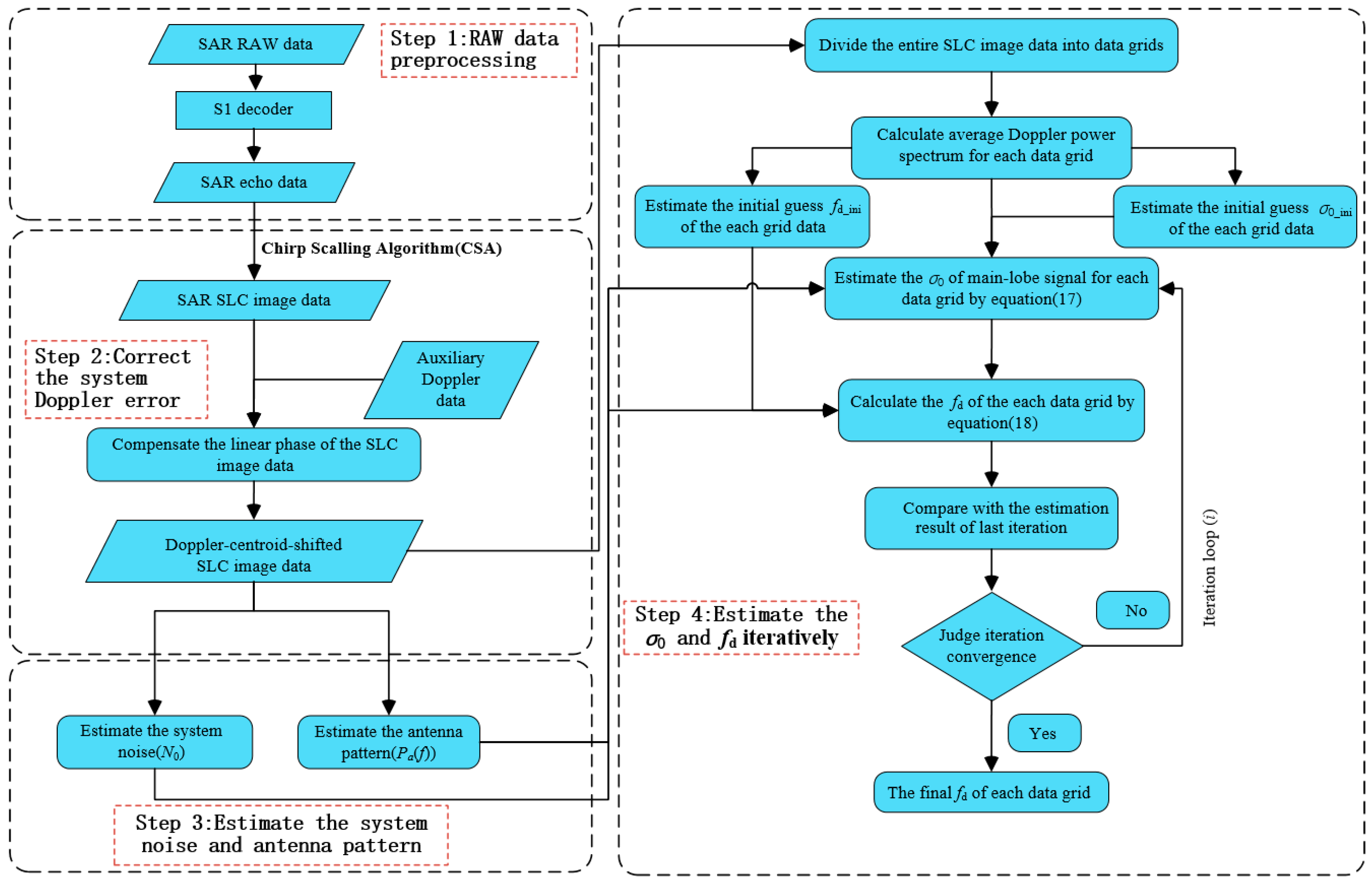 - Meng, H.; Wang, X.; Chong, J. An Azimuth antenna pattern estimation method based on Doppler spectrum in SAR ocean images. Sensors 2018, 18, 1081. [Google Scholar] [CrossRef]