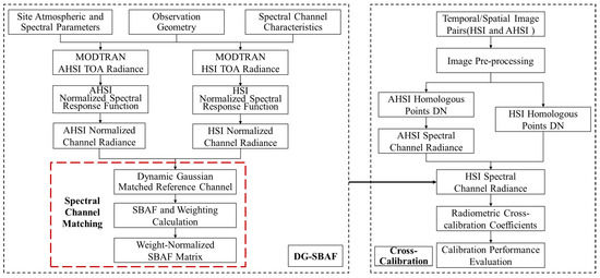 Our cross-calibration method incorporates the spectral channel characteristics of the HSI to optimize the spectral channel matching process. The flowchart was illustrated in Figure 5.