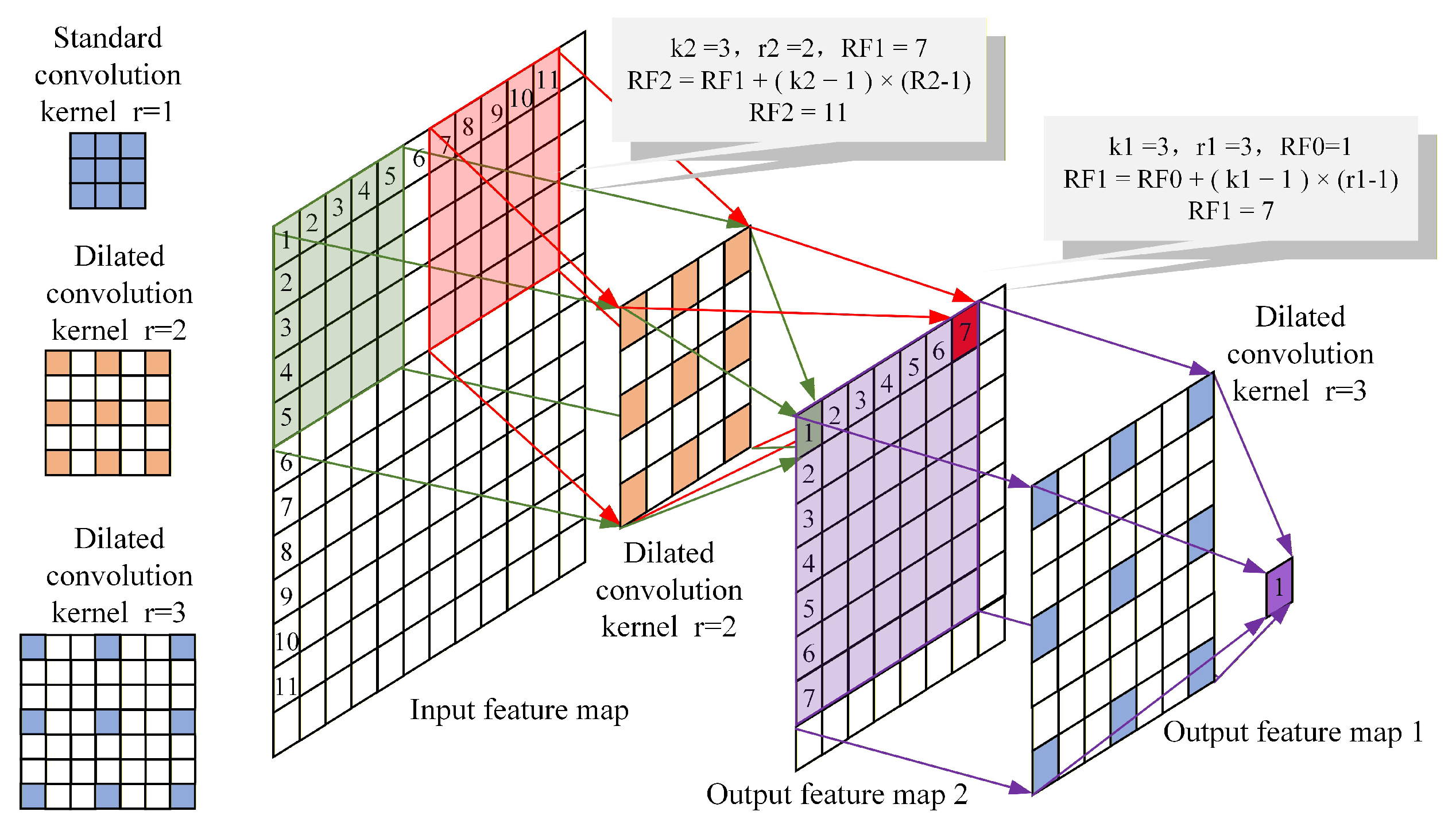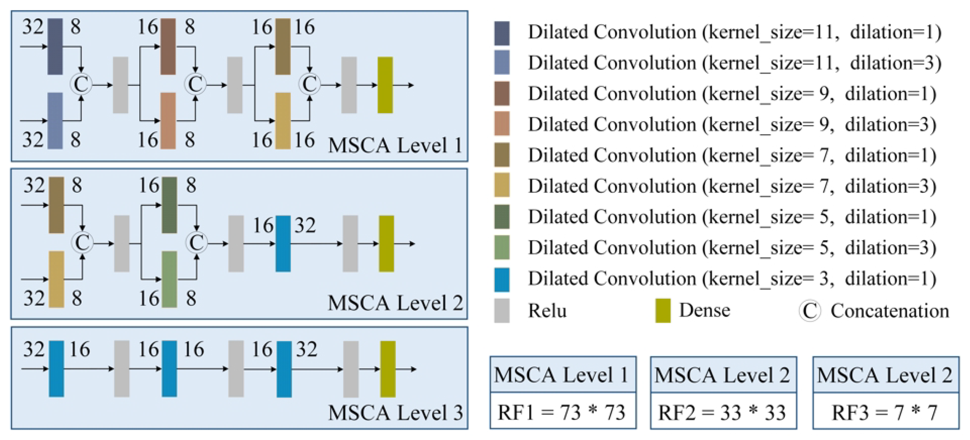 Table 15. Considering the trade-off between model performance and hardware efficiency, we selected the configuration that offers the best balance. In terms of Channel Count (CC), the baseline (64 channels) is chosen as it provides superior performance (PSNR: 27.094) with acceptable parameters, while half (0.08 M) and quarter (0.02 M) channels lead to significant performance drops. For the Kernel Size (KS), the multi-scale configuration is selected for its robust performance across metrics. For the Dilation Rate (DR), the setting d = (1,3) is adopted because it achieves the highest PSNR (27.258) and excellent SSIM (0.930) without increasing the parameter counts. This combination ensures optimal performance while maintaining computational efficiency.