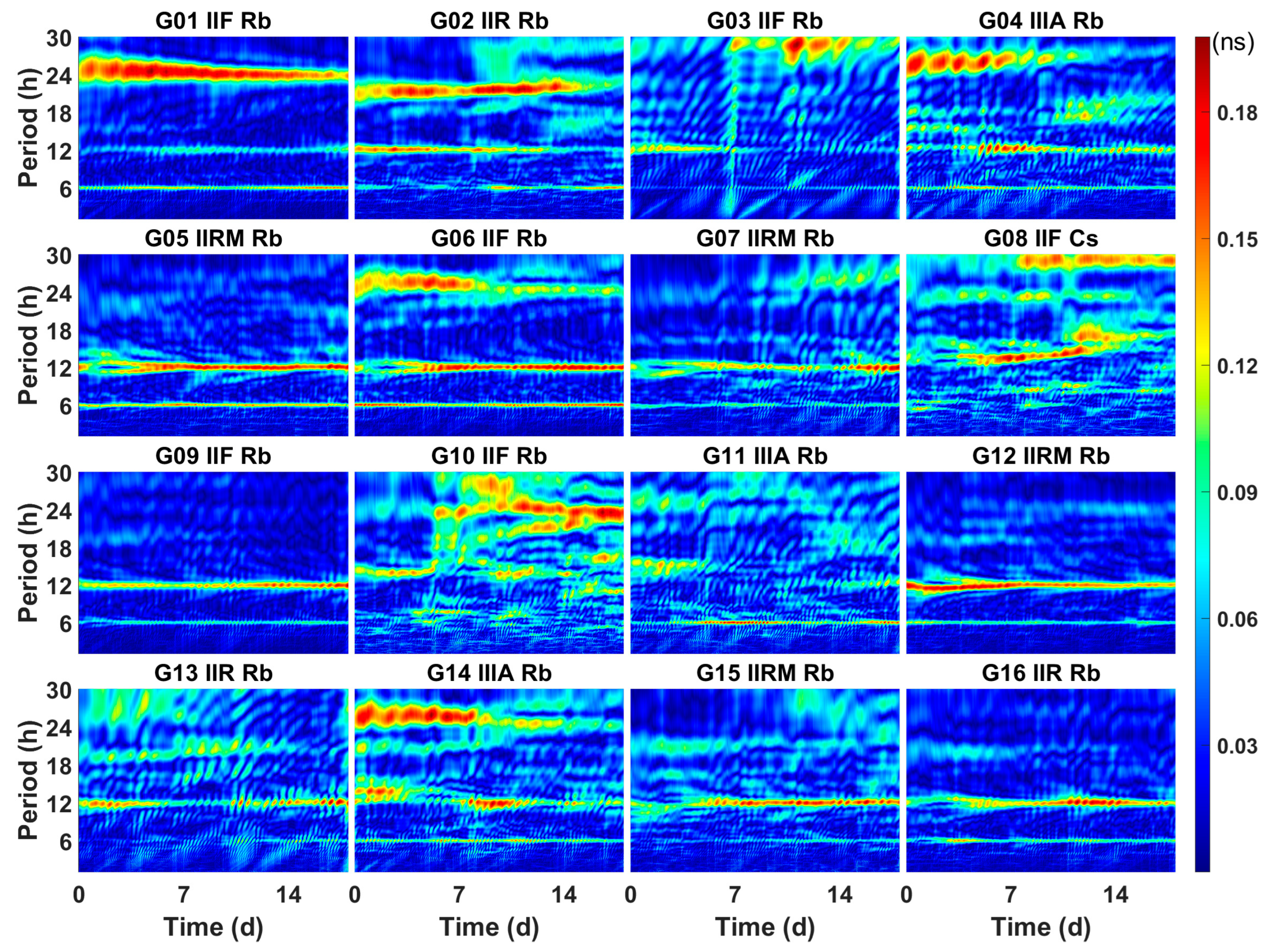 - NTFT spectrum shows that GPS satellite clock bias contains pronounced periodic components whose amplitudes and frequencies vary significantly over time.