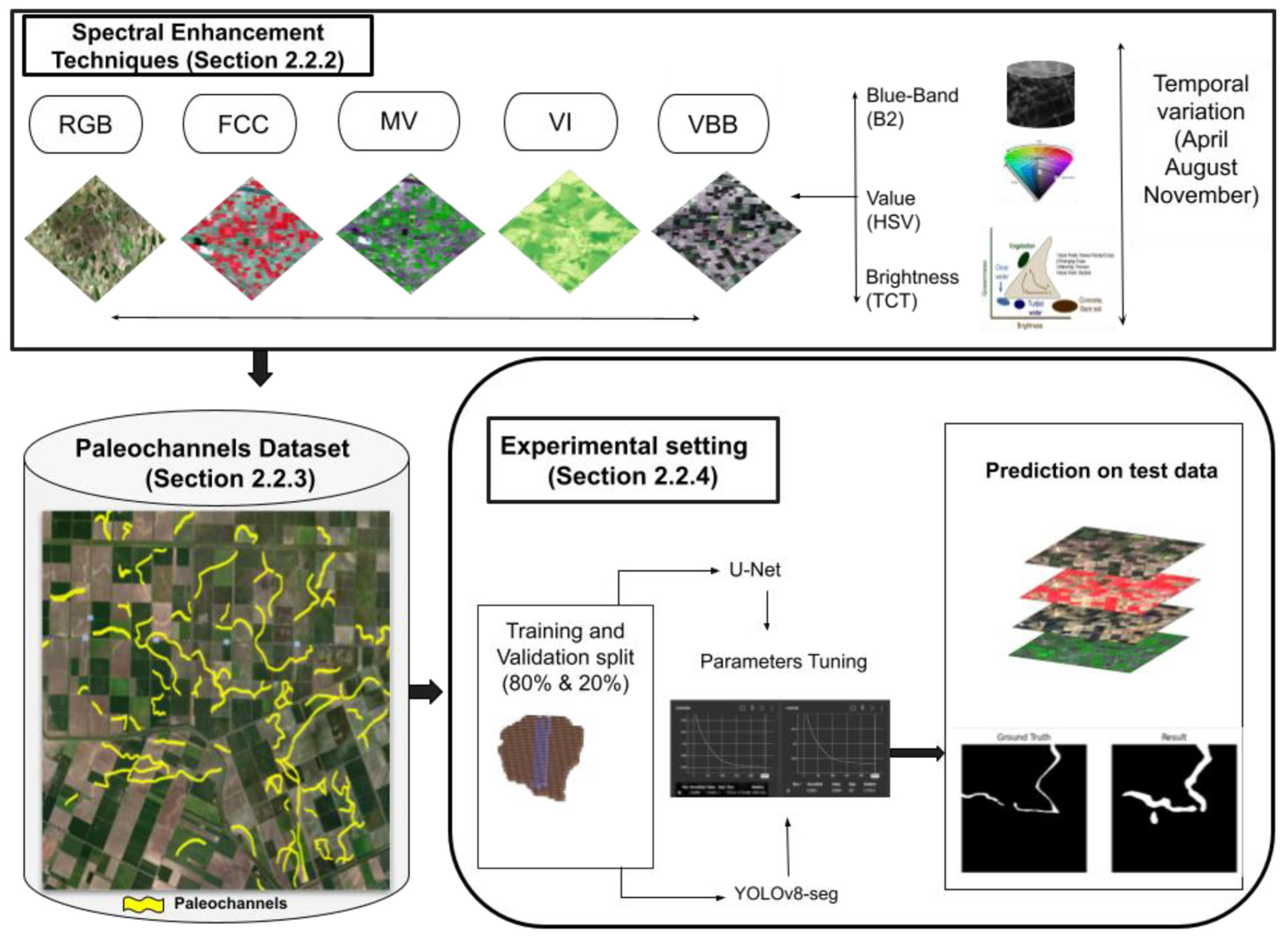 - The results demonstrate that incorporating spectral enhancement techniques and seasonally tailored preprocessing strategies significantly improve the robustness and precision of deep learning-based palaeochannel detection workflows.