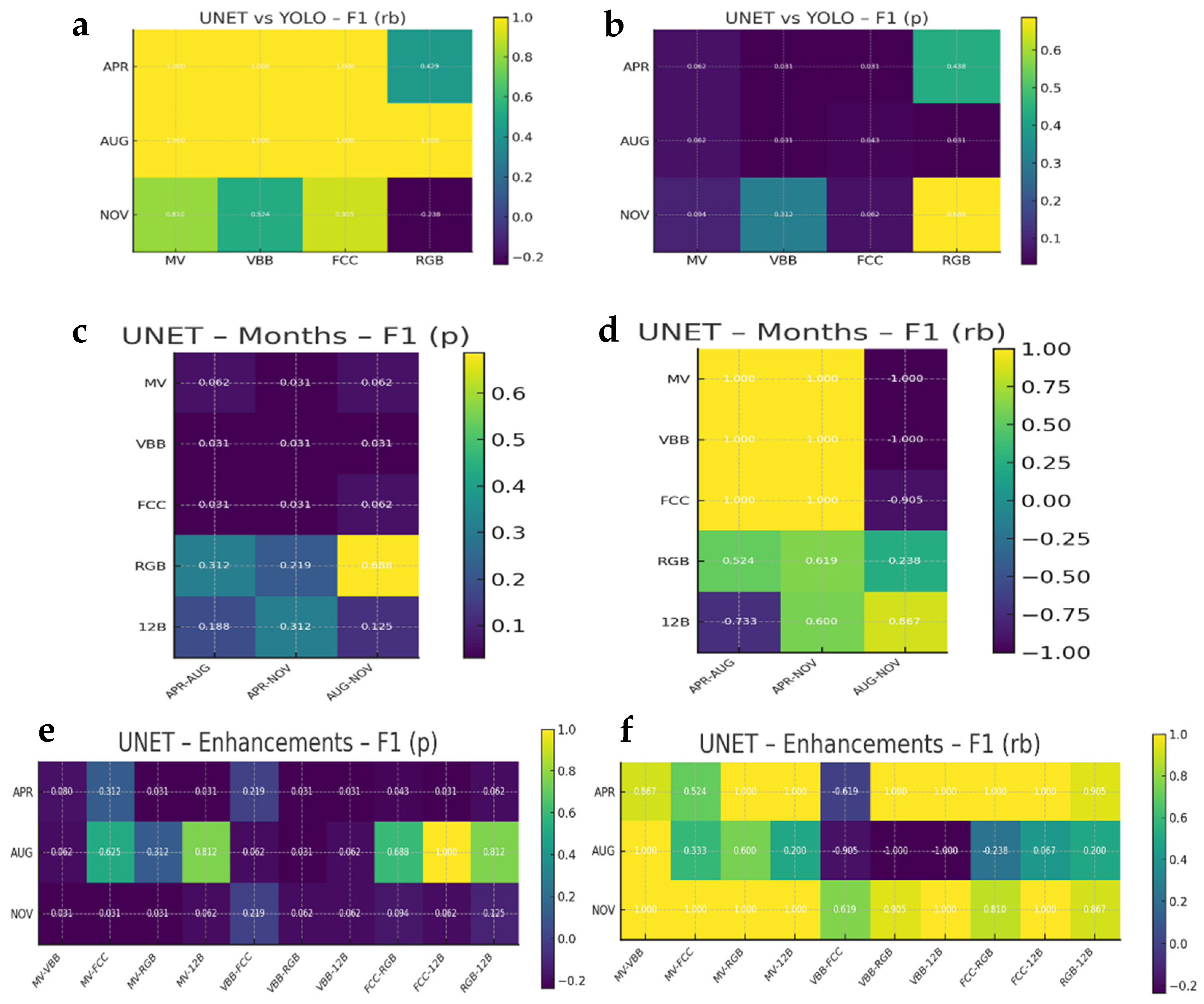 - By highlighting the interplay between spectral transformations, seasonal conditions, and model behaviour, this study establishes a new benchmark for integrating enhancement methods into AI-driven prospection pipelines, supporting more accurate, scalable, and season-adaptive applications in archaeological and environmental remote sensing.
