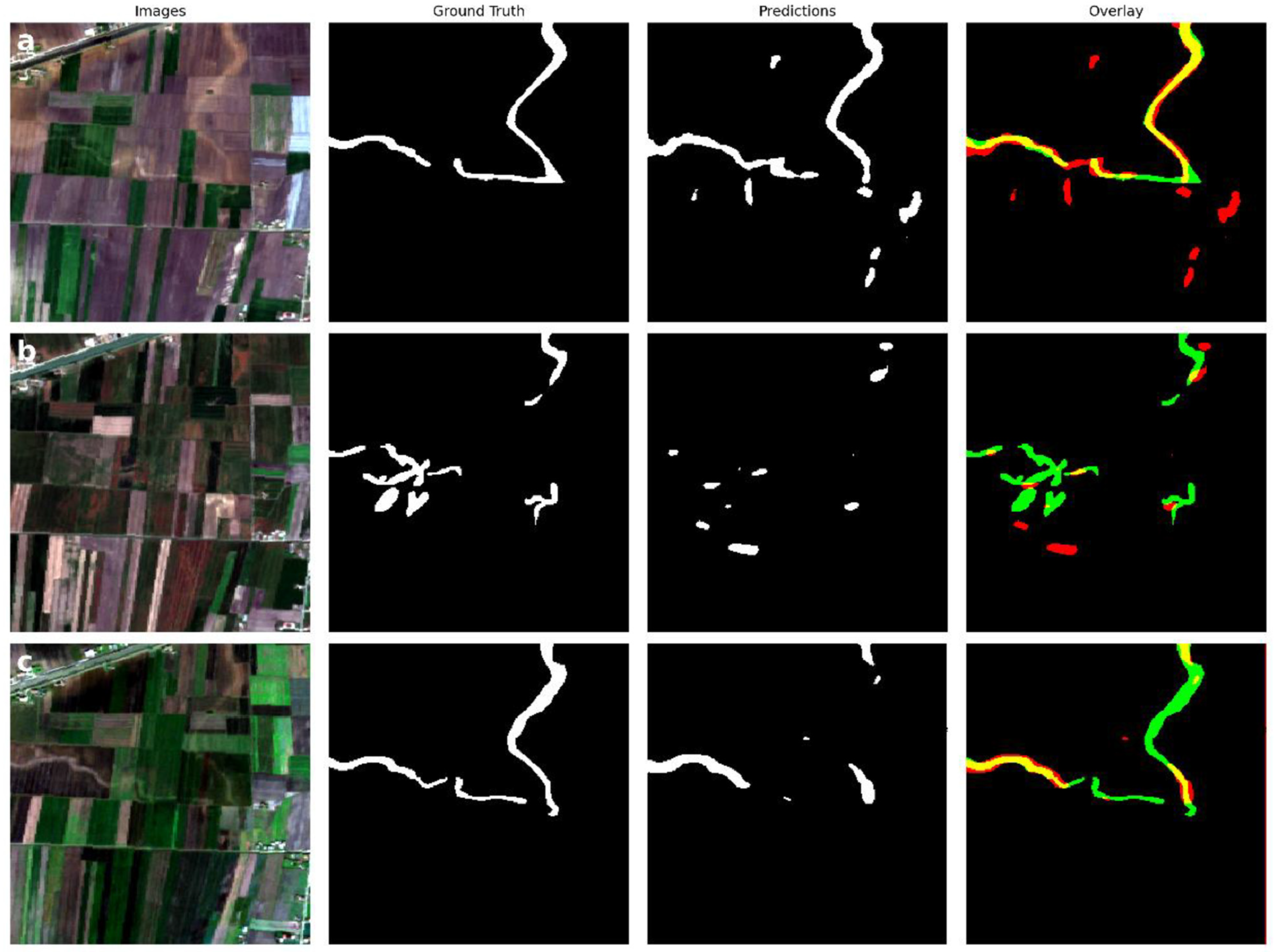 - The study presents the first systematic evaluation of how spectral enhancement techniques applied to Sentinel-2 imagery influence deep learning models for detecting palaeochannel-related soil and crop marks. Among the tested approaches, the multi-temporal composite (MV) consistently achieved the highest segmentation accuracy.