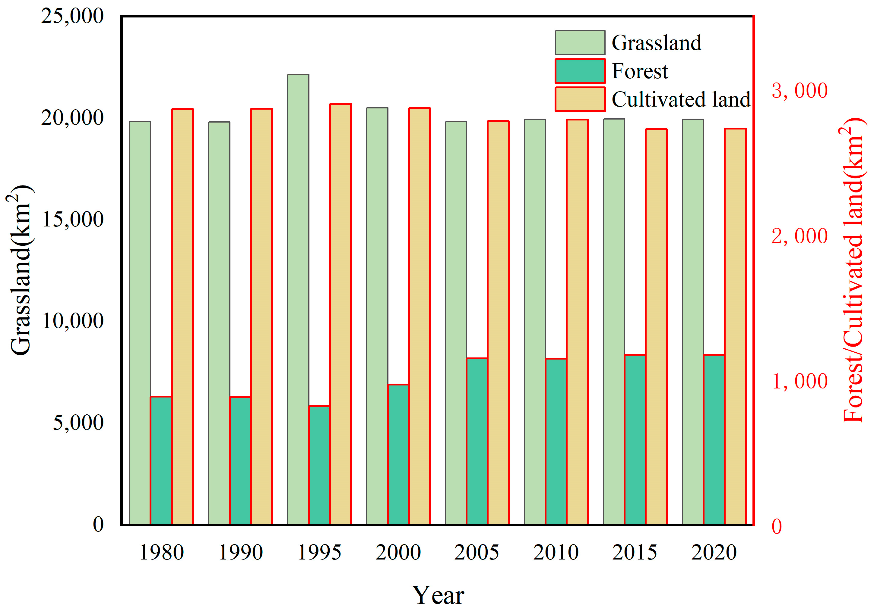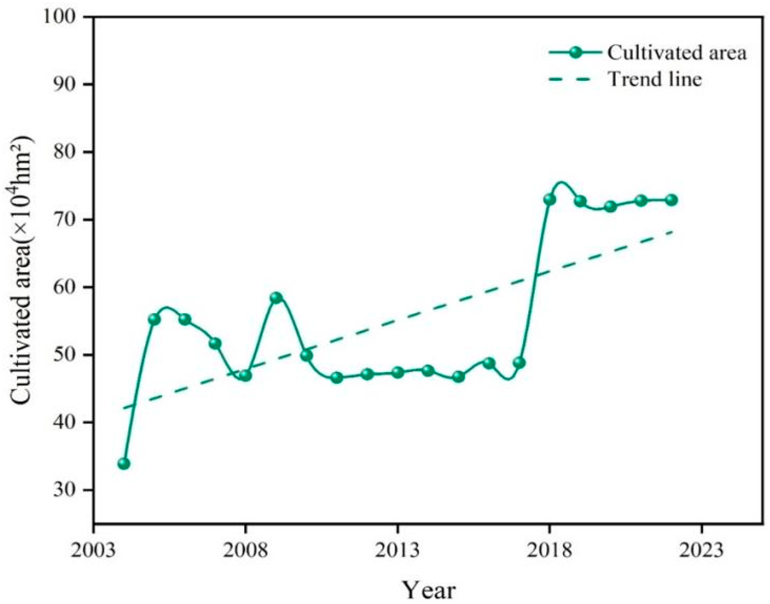 - Lin, M.; Hou, L.; Qi, Z.; Wan, L. Impacts of Climate Change and Human Activities on Vegetation NDVI in China’s Mu Us Sandy Land during 2000–2019. Ecol. Indic. 2022, 142, 109164. [Google Scholar] [CrossRef]