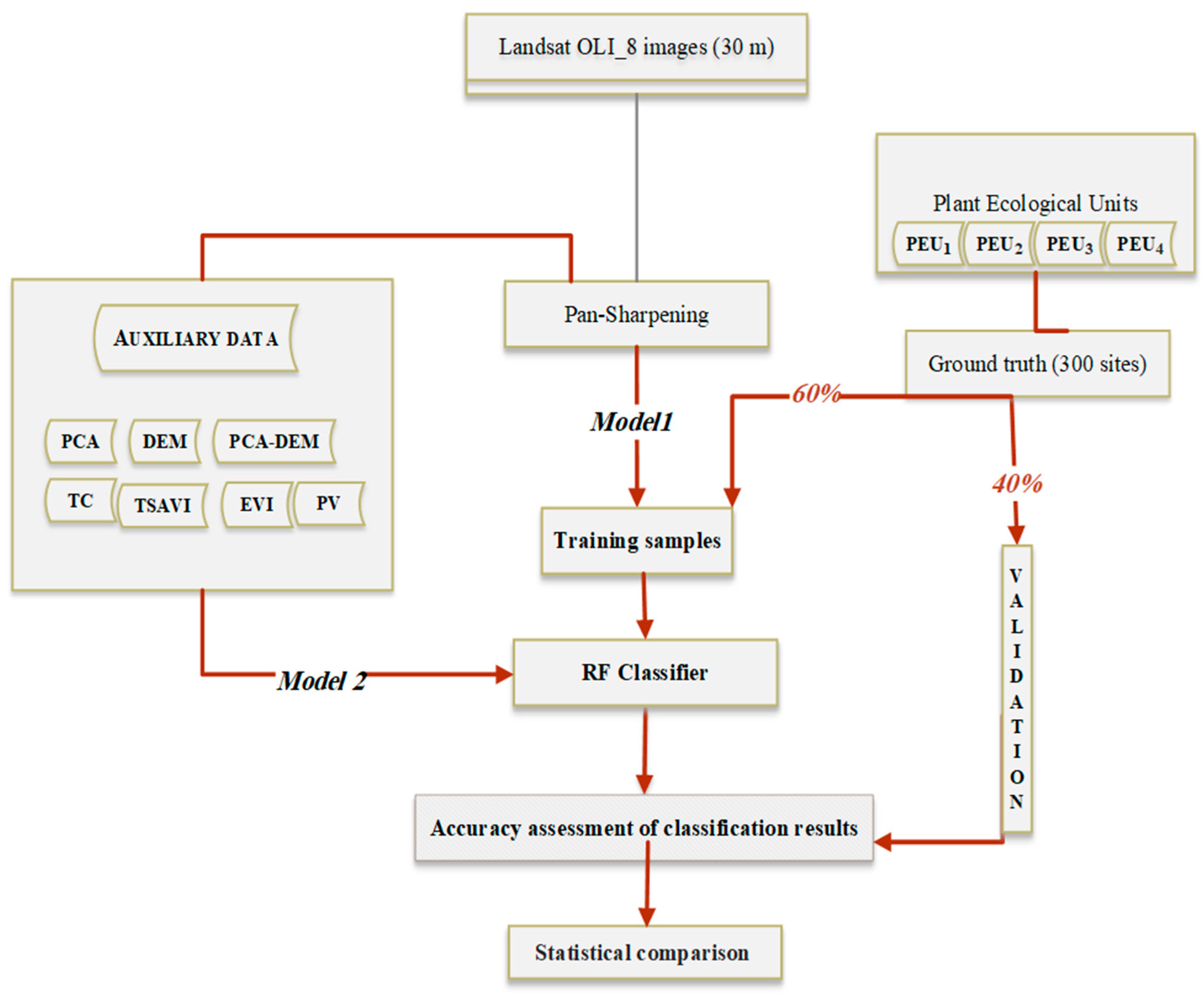 Aghababaei, M.; Ebrahimi, A.; Naghipour, A.A.; Asadi, E.; Verrelst, J. Enhancing Plant Ecological Unit Mapping Accuracy with Auxiliary Data from Landsat-8 in a Heterogeneous Rangeland. Remote Sens. 2025, 17, 4025. https://doi.org/10.3390/rs17244025