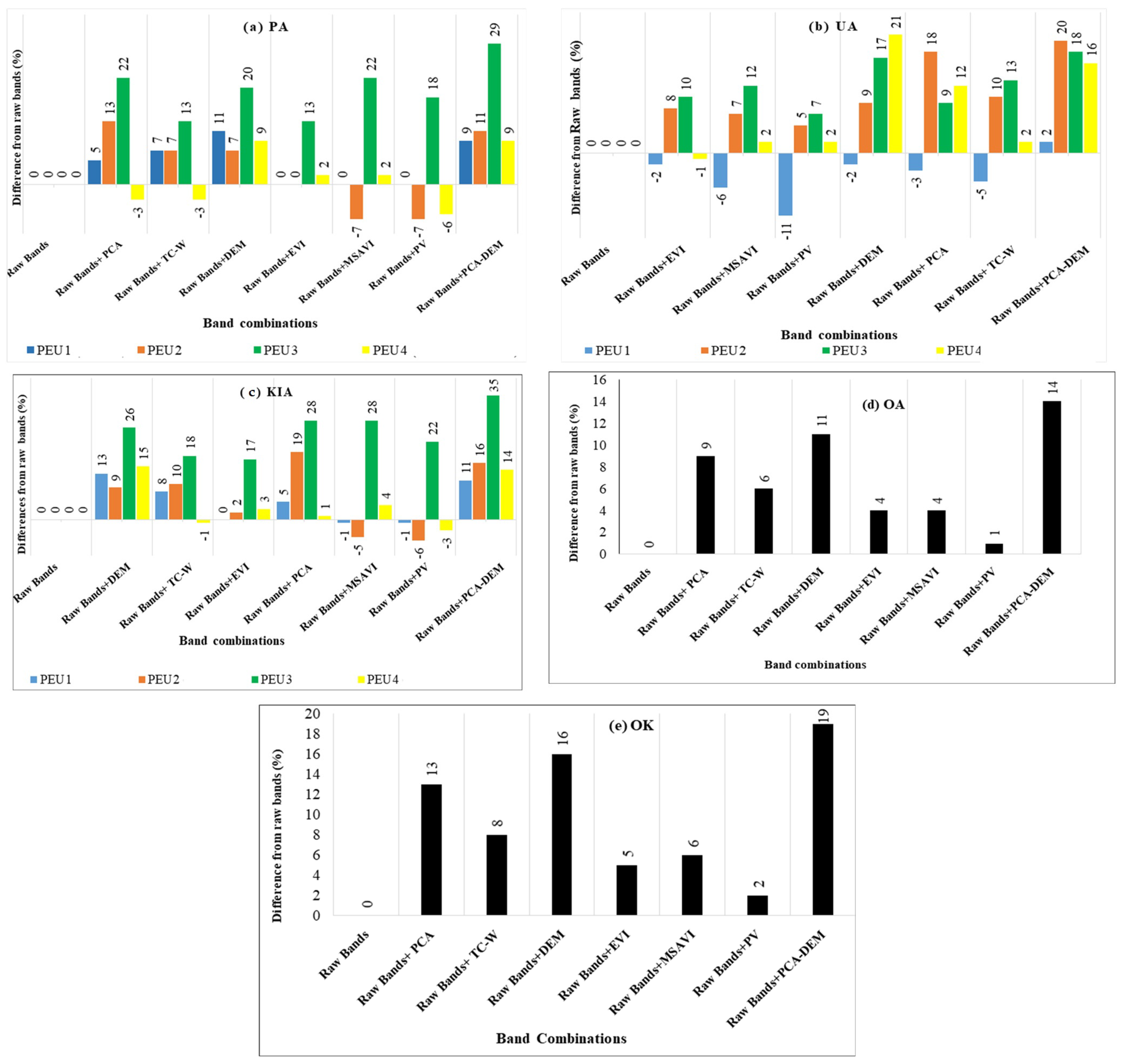 2.4.4. PEU Mapping Using Reflectance Bands and Auxiliary Data