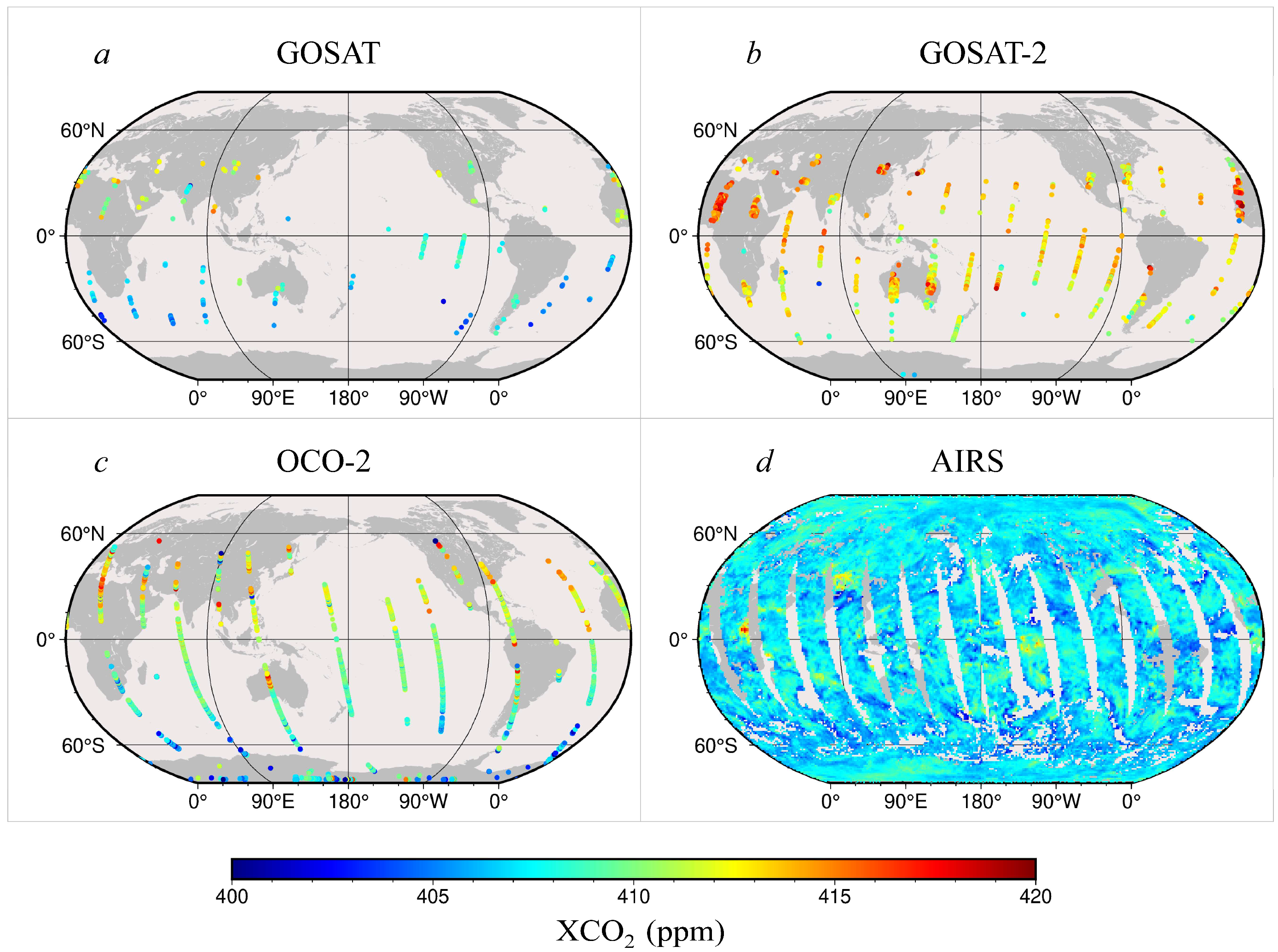 | GOSAT | GOSAT-2 | OCO-2 | AIRS | |
