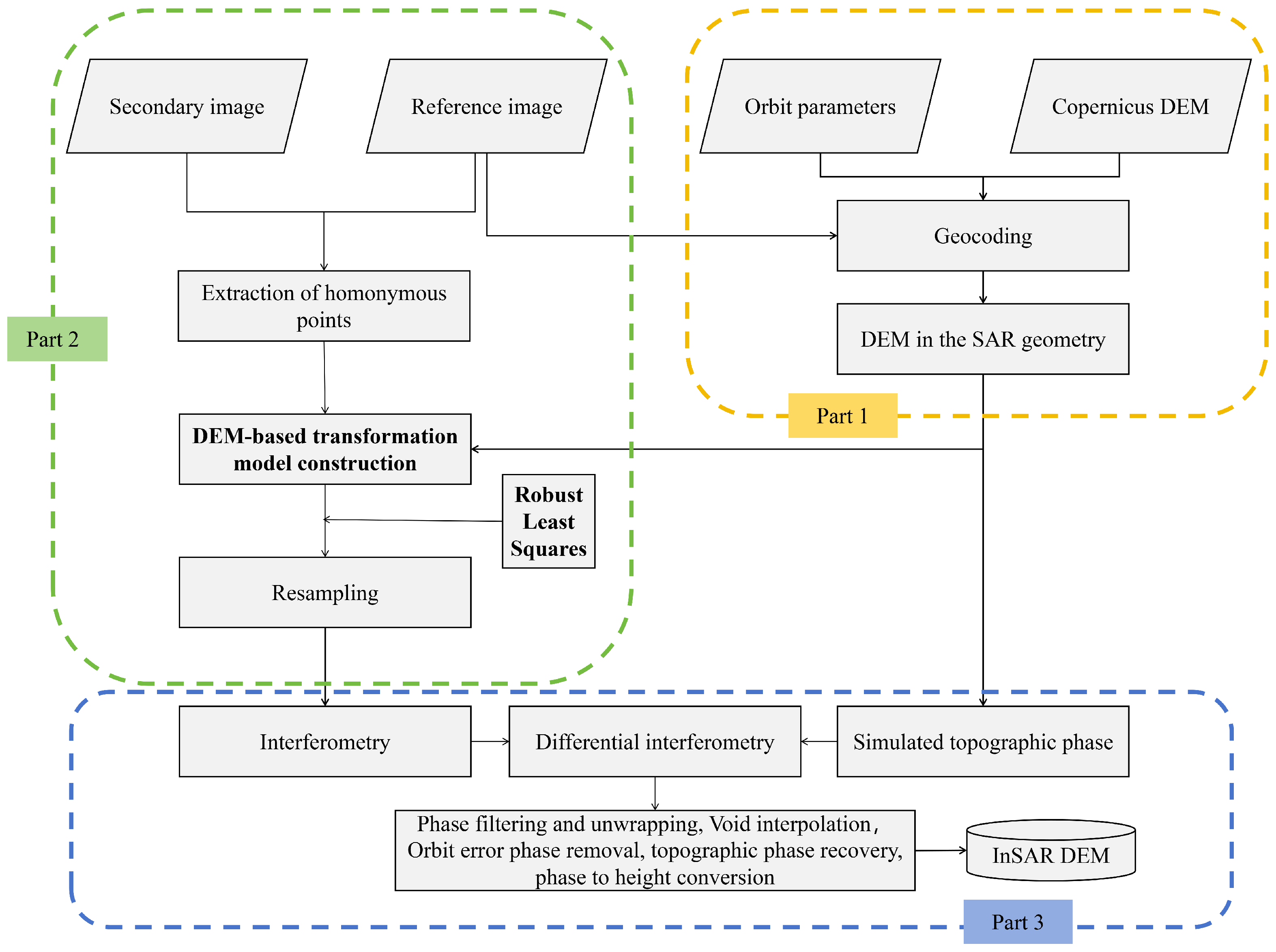 - To propose an enhanced model for the fine co-registration of a long-baseline InSAR pair.