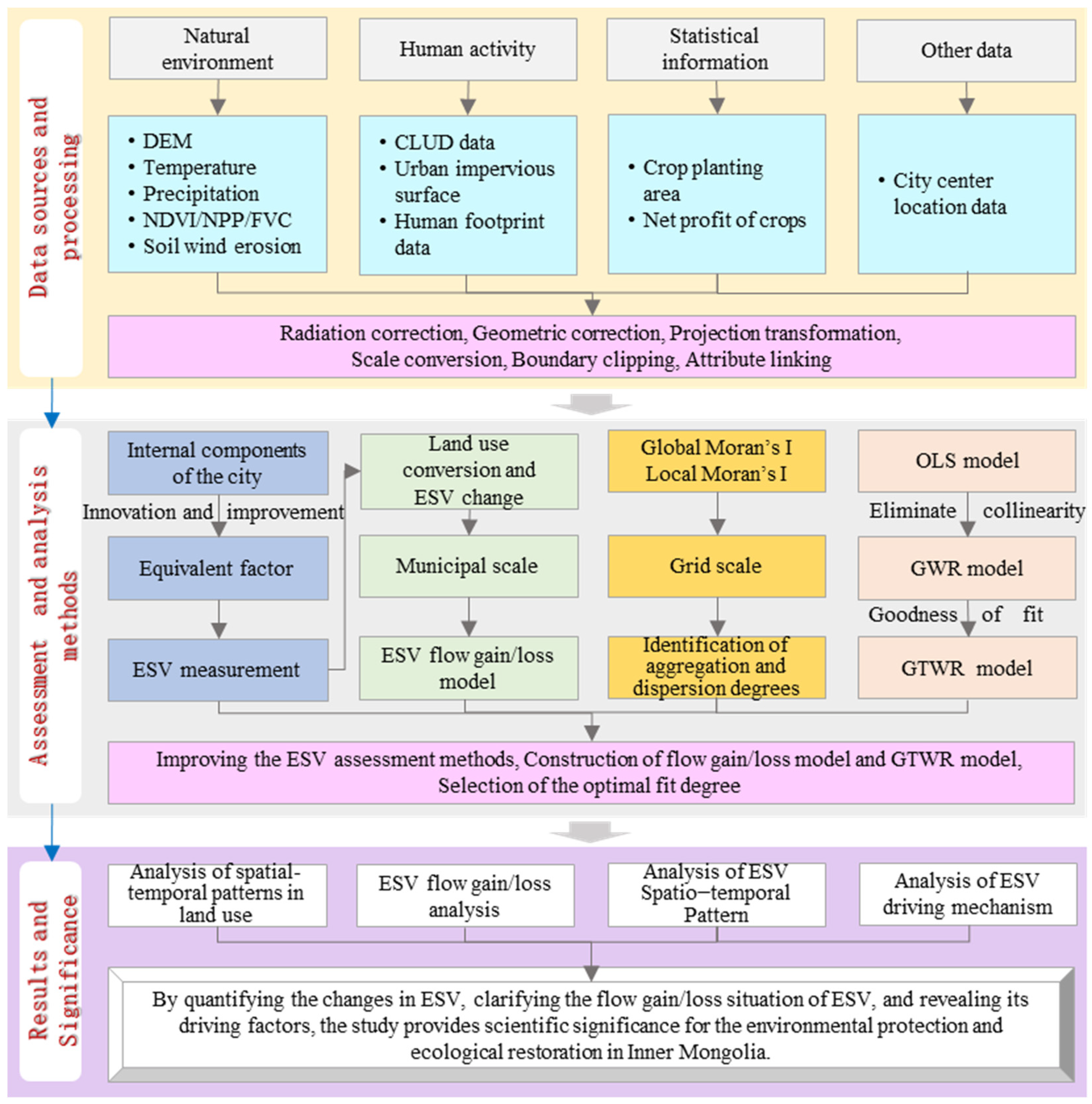 - Another key finding was that small-scale variables with significant ecological service impacts were quantified: only a relatively minor fluctuation of −1.37% among the grassland, woodland, wetland, and water bodies resulted in a huge ESV loss of CNY 116.141 billion, with ESV trends primarily driven by these four land cover types.