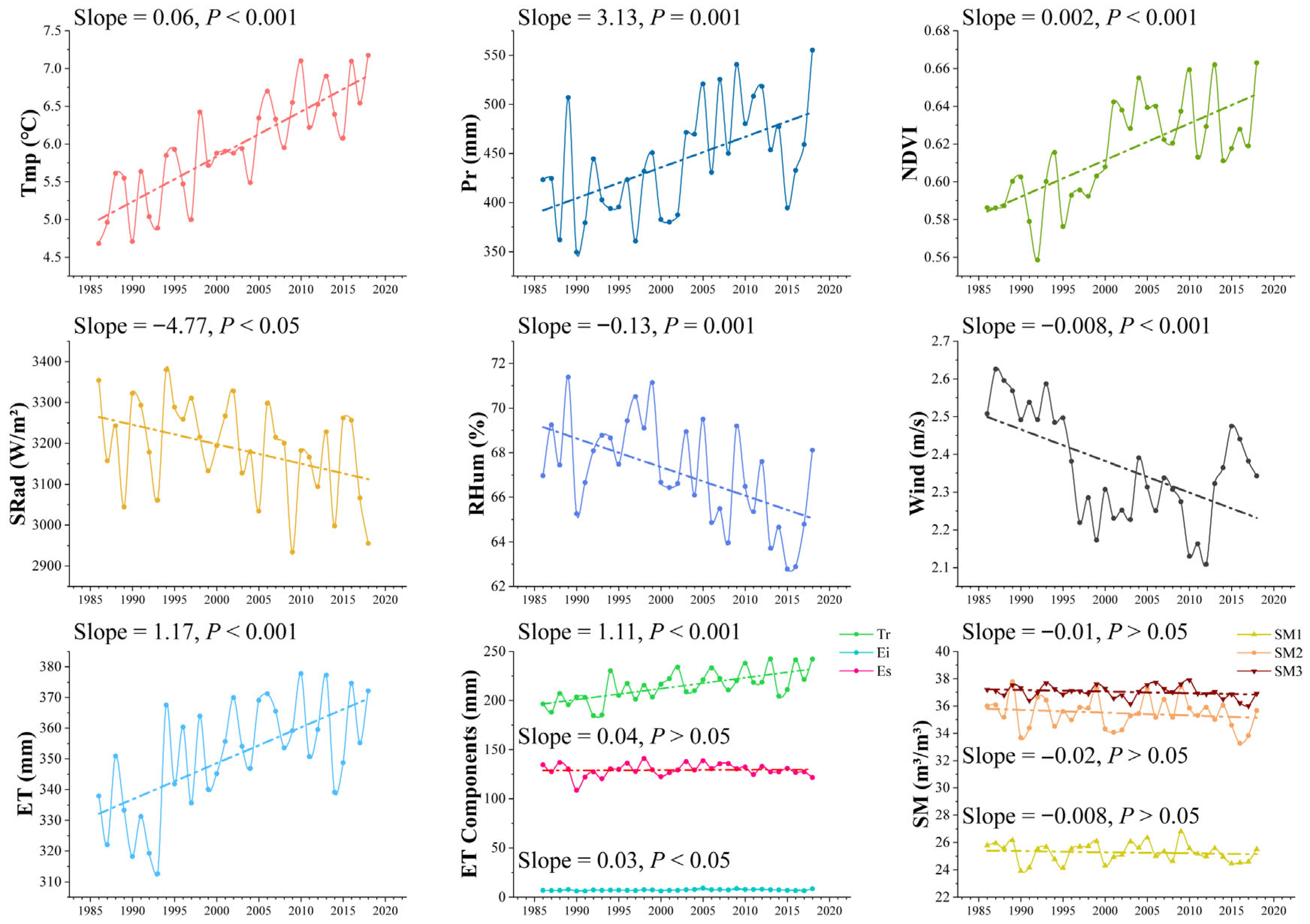 2.3.1. Impacts of Variables on ET and Its Components