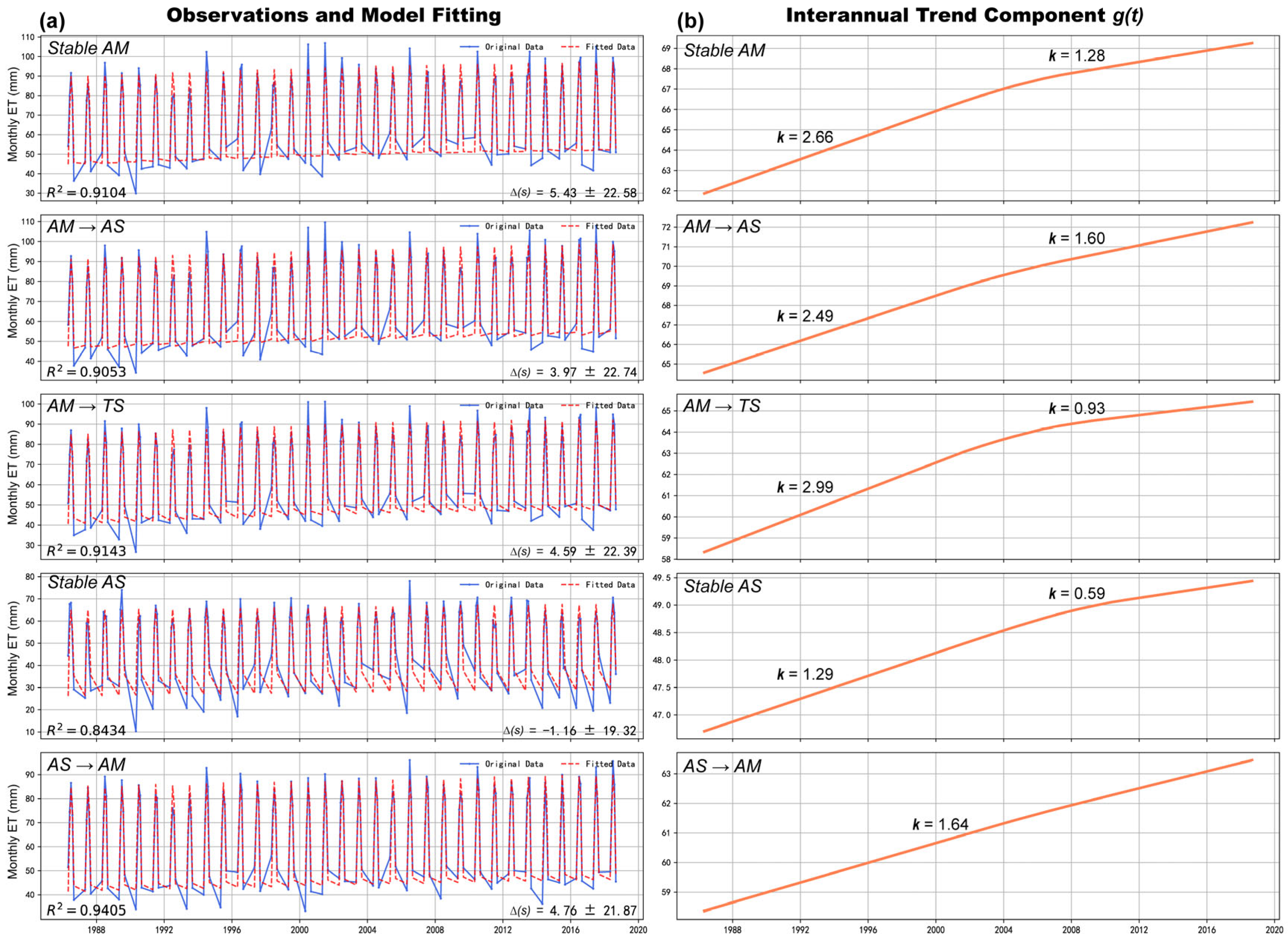 2.3.3. Variations in ET Trend and Seasonality Detection Under Compositional Transitions