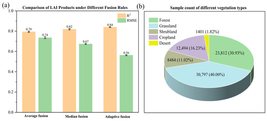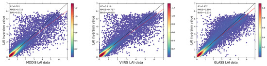 where denotes the number of inverted data points, and represent the labeled and inverted LAI values, respectively, and is the mean of the inverted LAIs.
