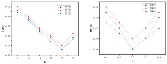 where L is the loss function for LAI values > 4.0. The hyperparameter γ is the weighting of the KLF, i.e., when , the penalty on errors for samples with high LAI values is increased considering the supersaturation effects of LAI [38]. This mechanism encourages the network to pay more attention to underrepresented high LAI regions, alleviating the bias introduced by dataset imbalance. Compared to existing saturation correction strategies for high LAI values [39,40,41], the KLF method does not avoid saturation at the data processing stage; rather, it directly regulates the inversion process via the loss function, which exhibits strong generalization ability and can be generalized to different vegetation types.