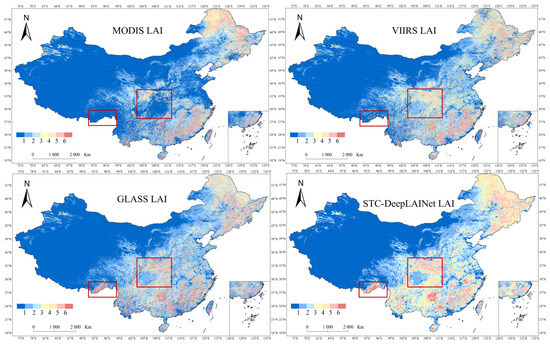- Li, X.; Lu, H.; Yu, L.; Yang, K. Comparison of the spatial characteristics of four remotely sensed leaf area index products over China: Direct validation and relative uncertainties. Remote Sens. 2018, 10, 148. [Google Scholar] [CrossRef]