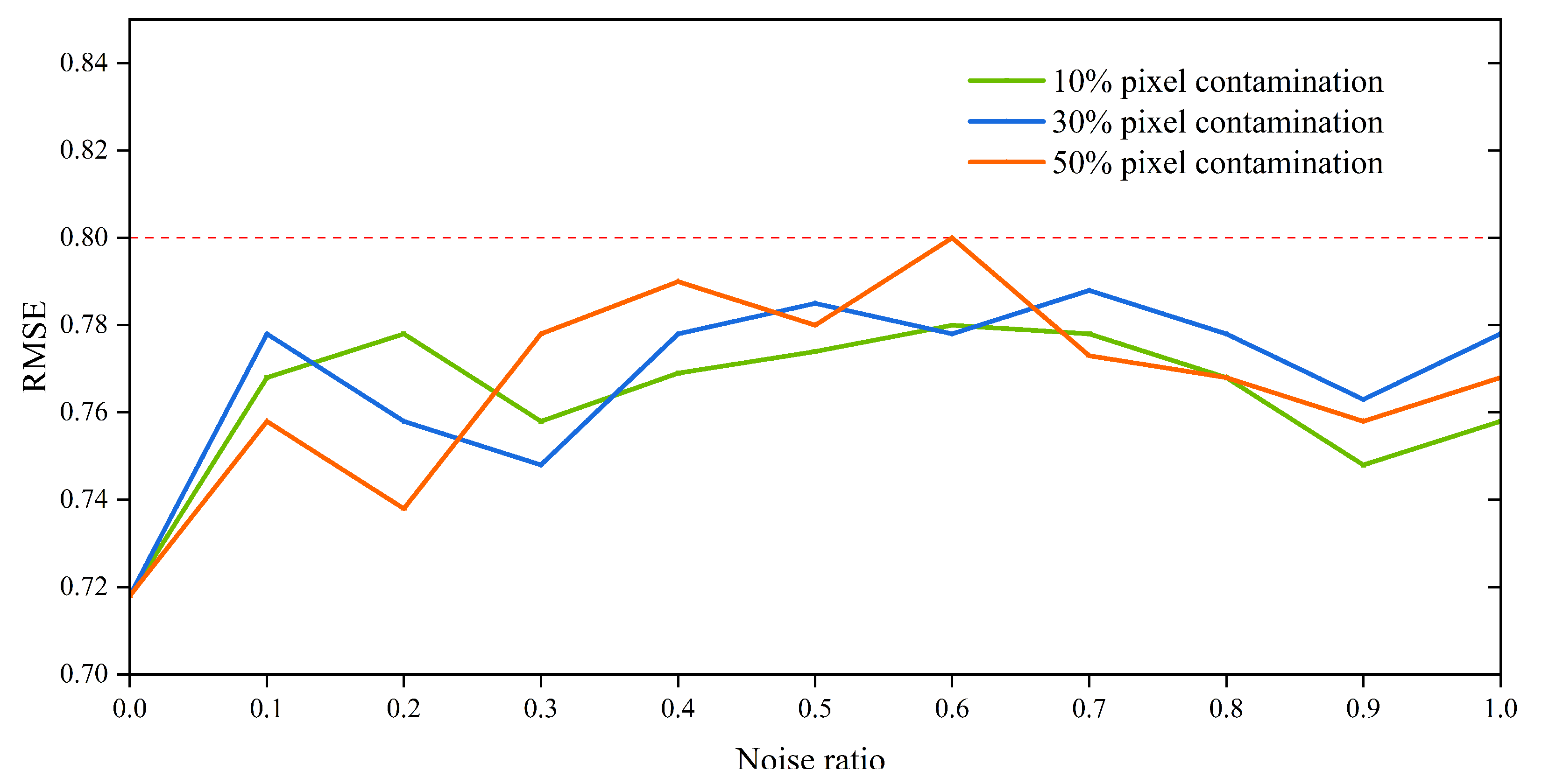 4.6. STC-DeepLAINet’s Tolerance to Cloud/Shadow Noise