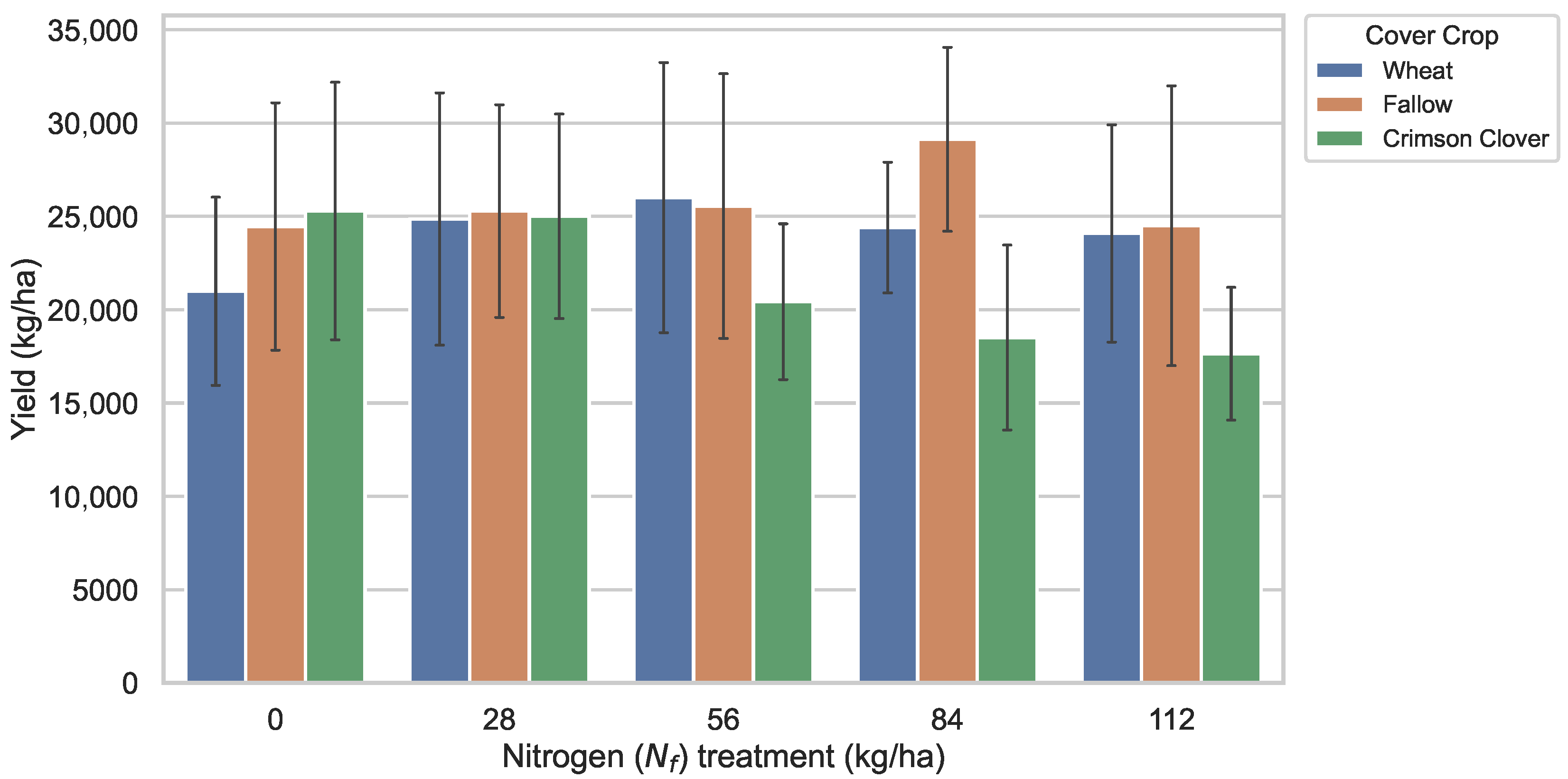 - Cover crop selection is a stronger determinant of yield than fertilizer rate, informing management decisions.