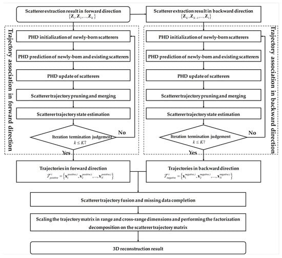 Flowchart of ML-GM-PHD filtering-based scatterer trajectory association and 3D reconstruction algorithm.
